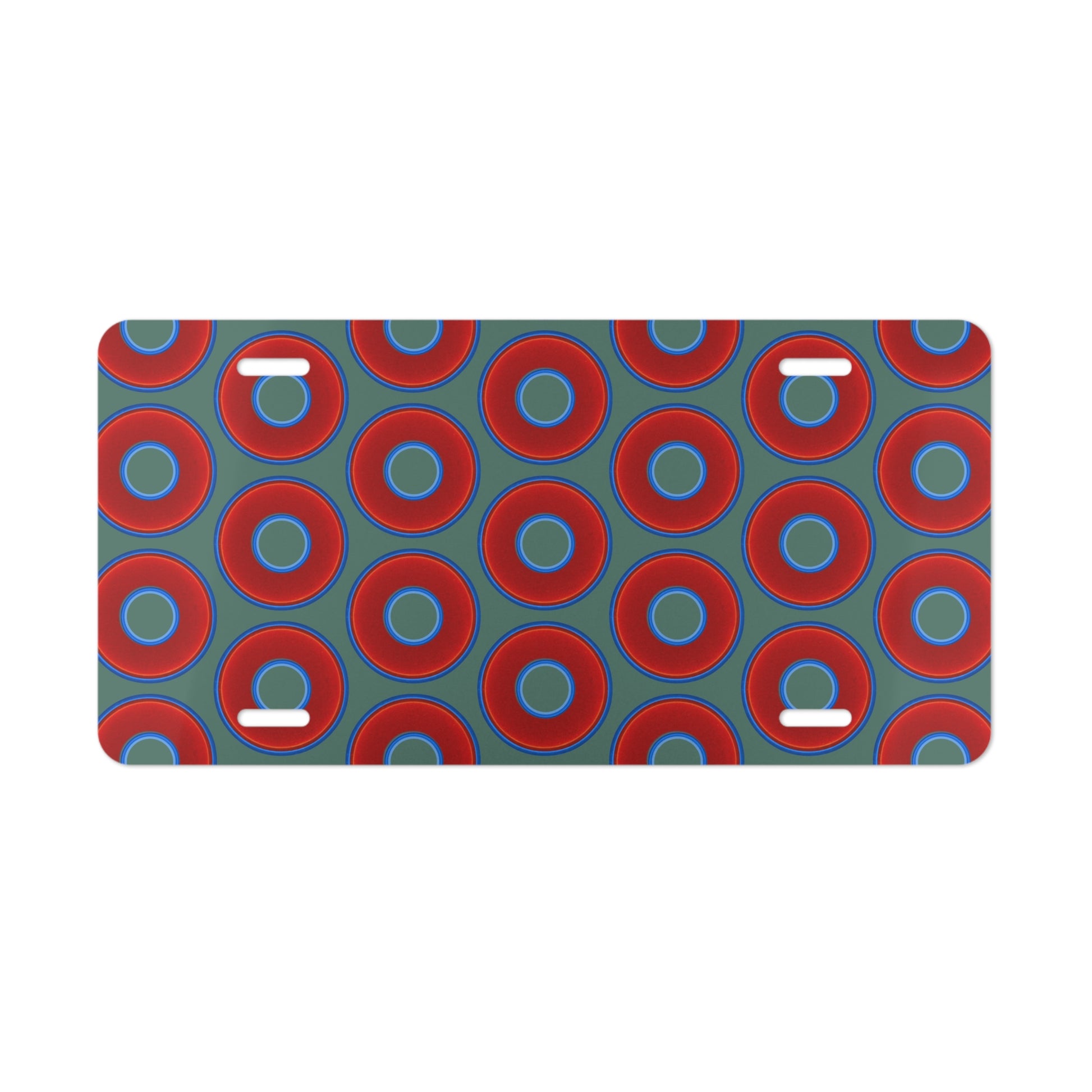 Lumpy Donut Vanity Plate - red vivid donut print w/Fenway green background
