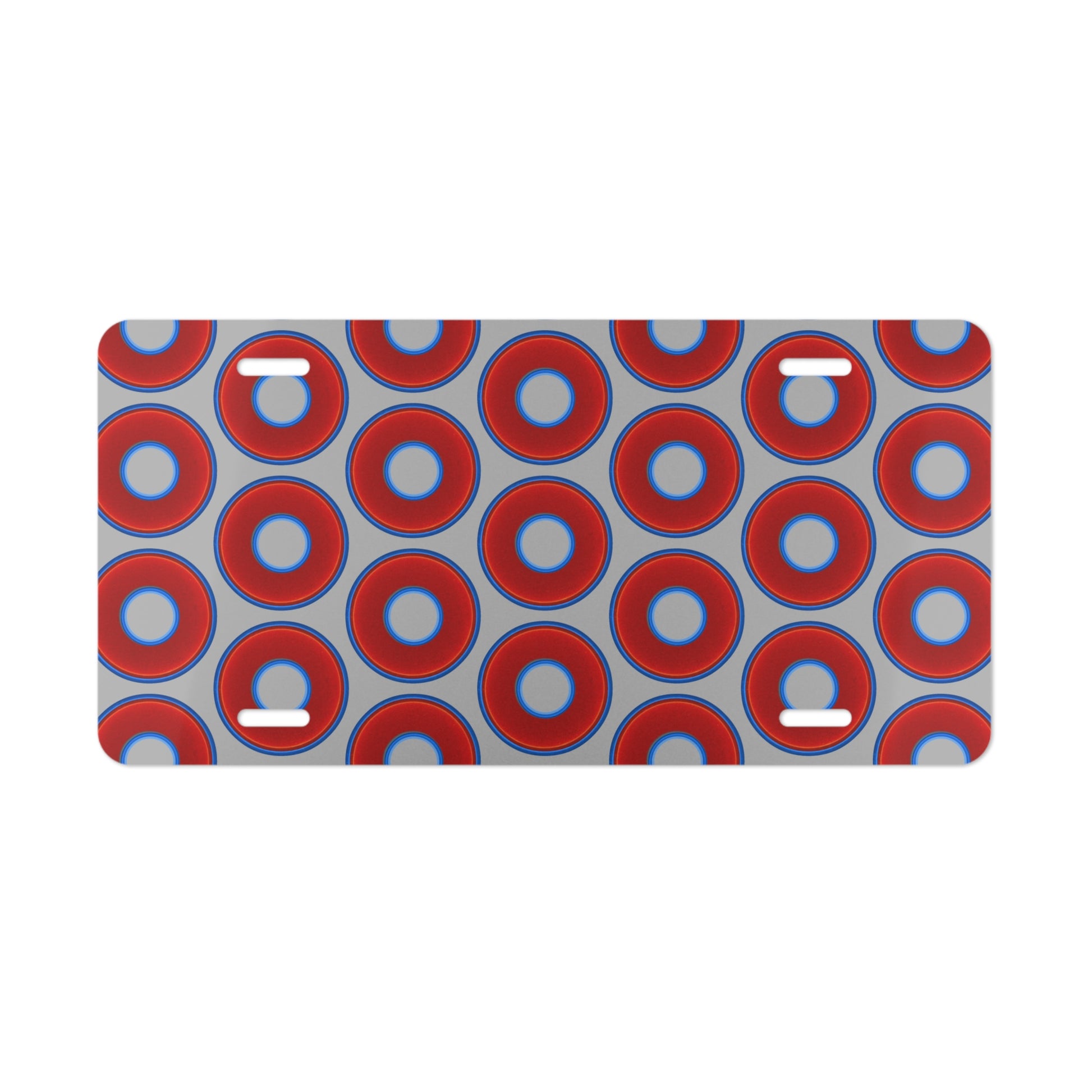 Lumpy Donut Vanity Plate - red vivid donut print w/light gray background