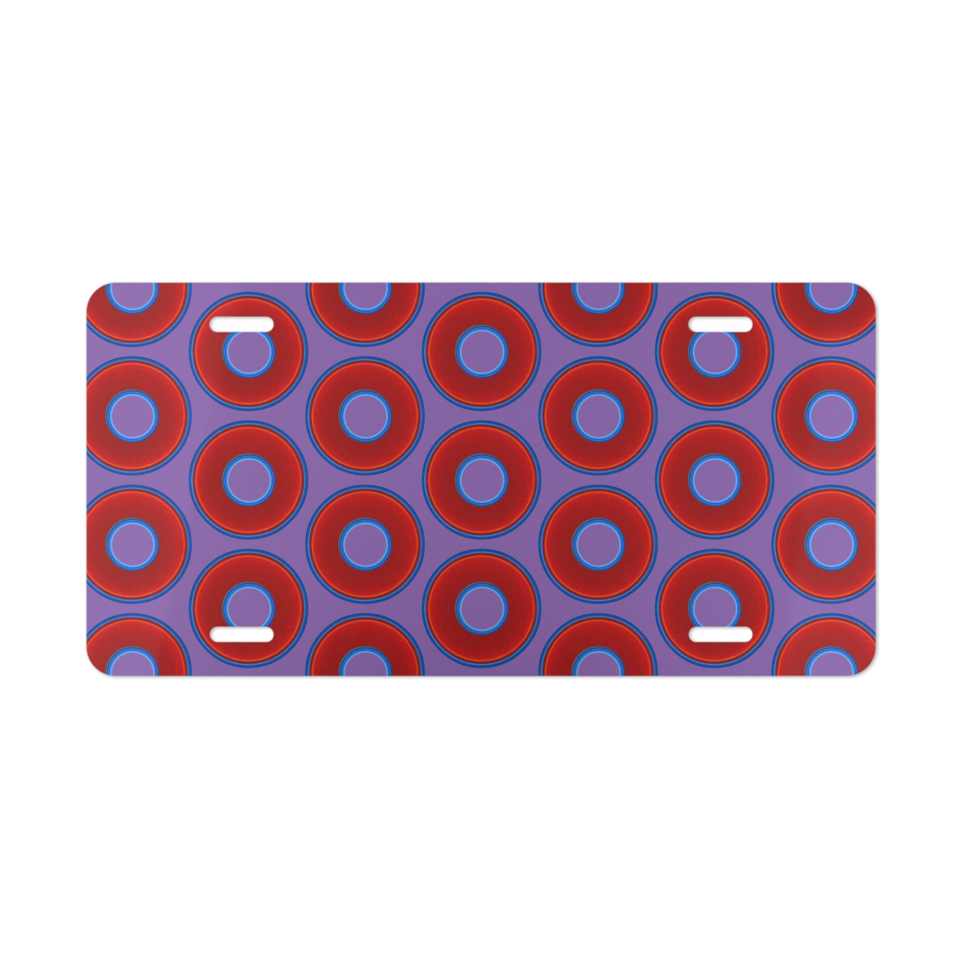 Lumpy Donut Vanity Plate - red vivid donut print w/light purple background