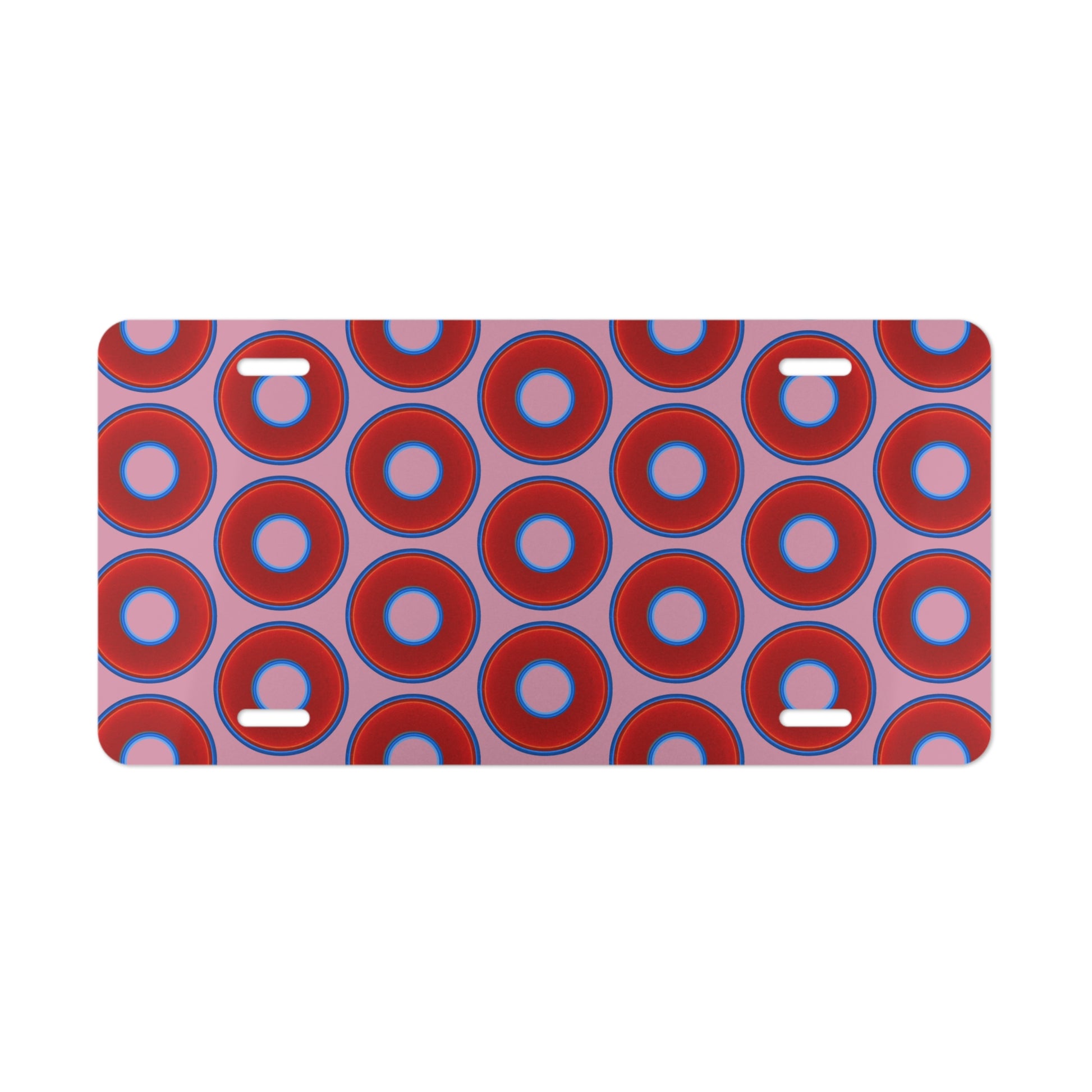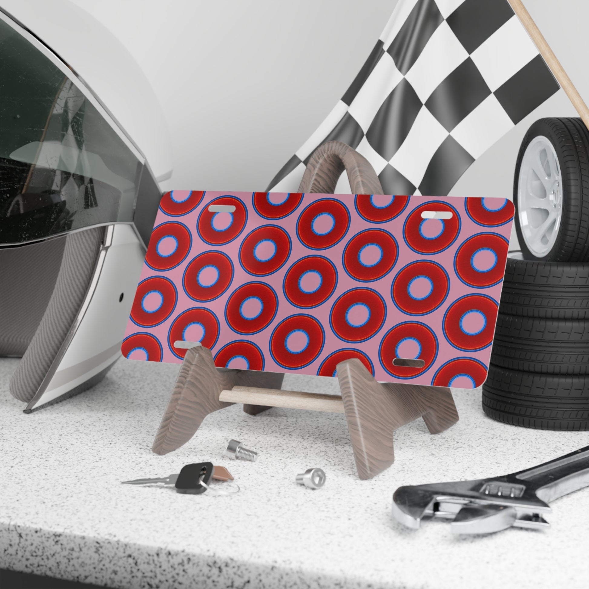Lumpy Donut Vanity Plate - red vivid donut print w/pale magenta background