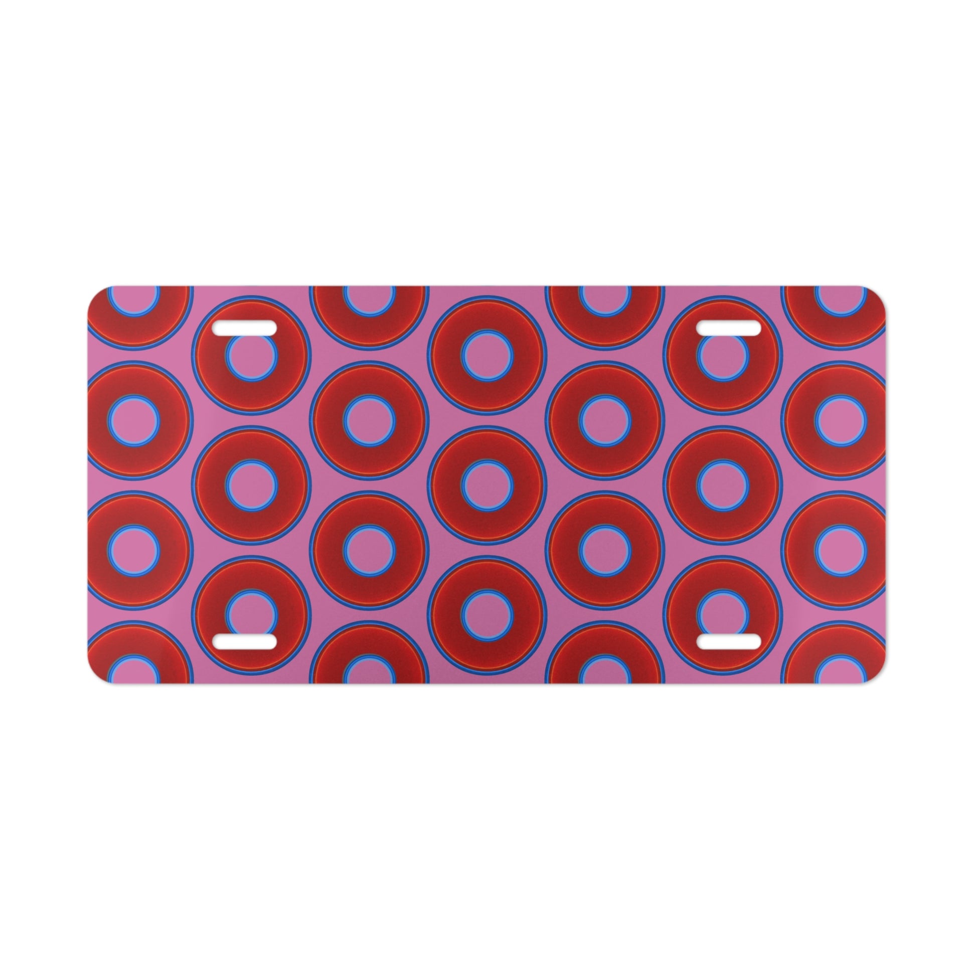 Lumpy Donut Vanity Plate - red vivid donut print w/pink background