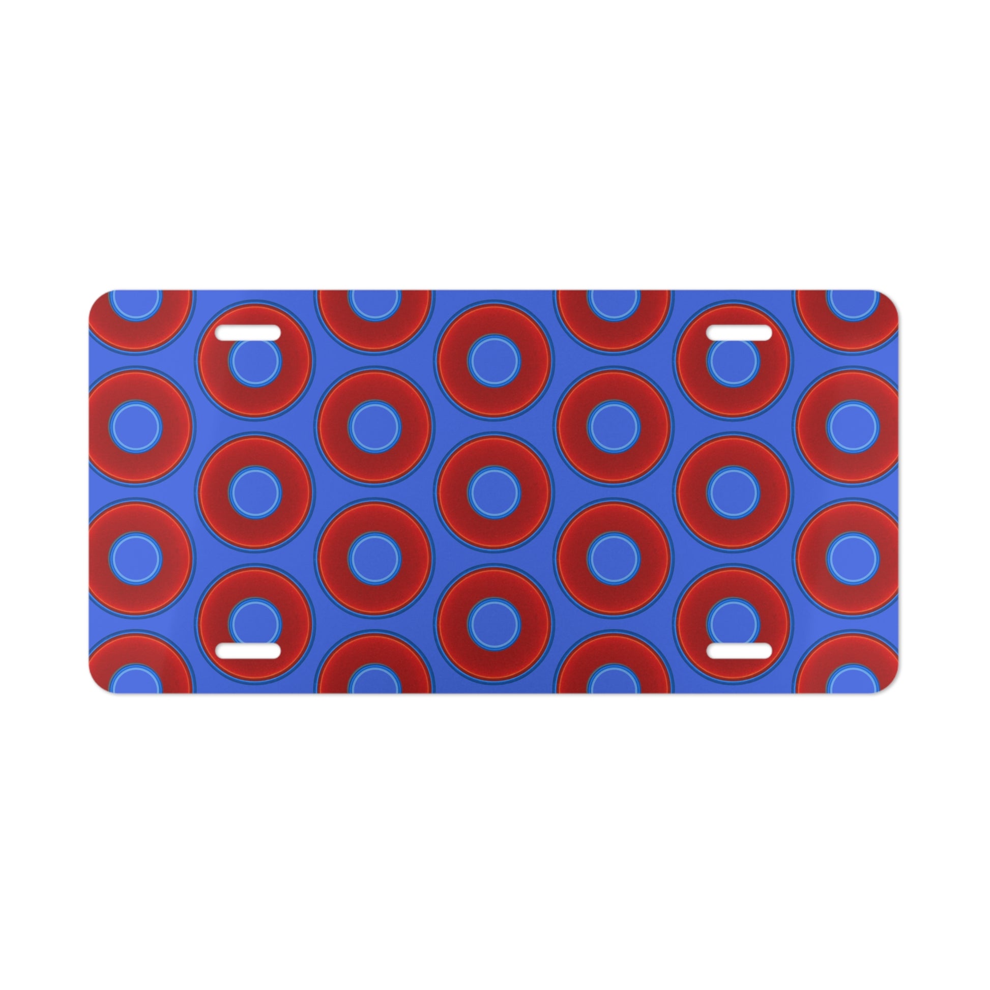 Lumpy Donut Vanity Plate - red vivid donut print w/royal blue background