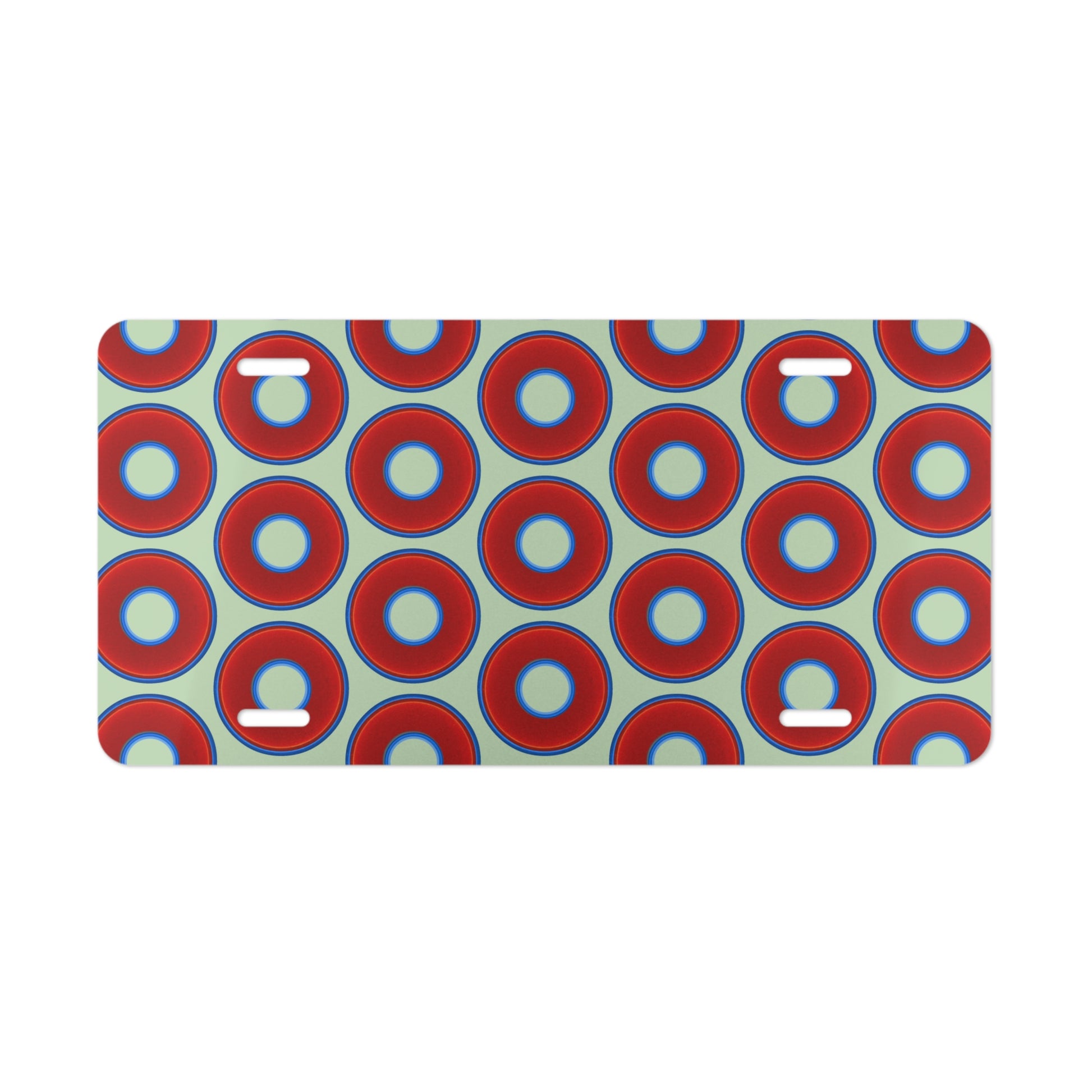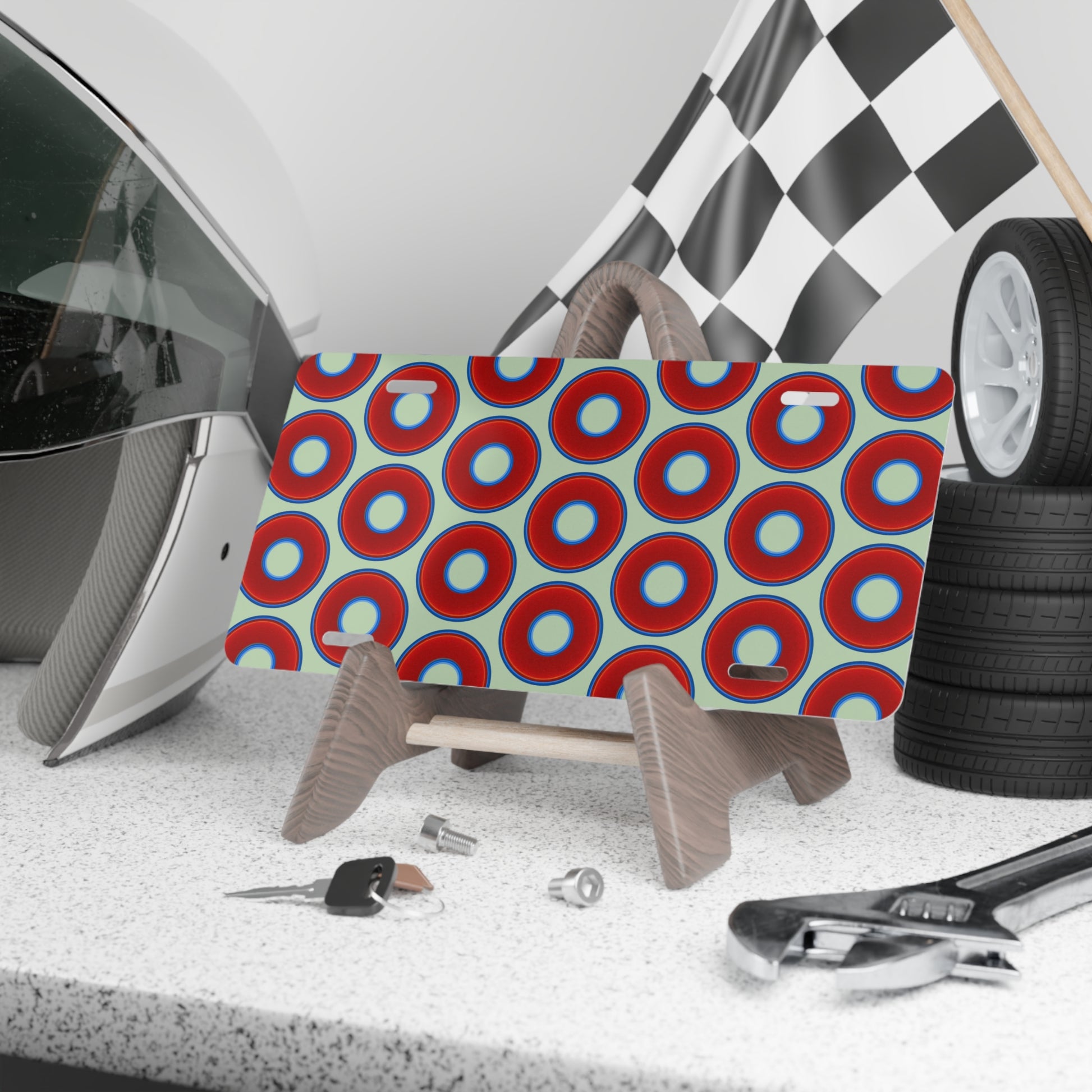 Lumpy Donut Vanity Plate - red vivid donut print w/seafoam background