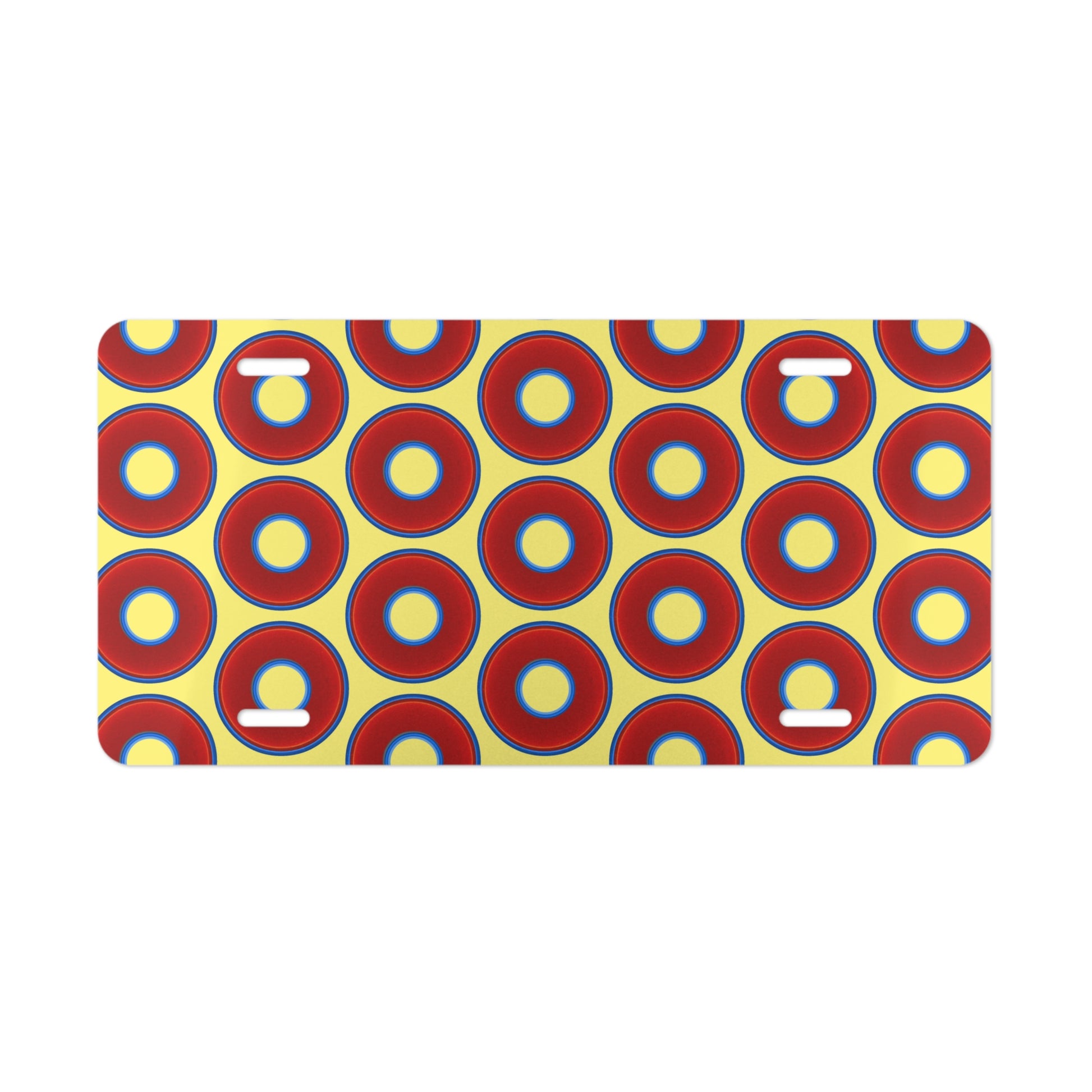 Lumpy Donut Vanity Plate - red vivid donut print w/yellow background
