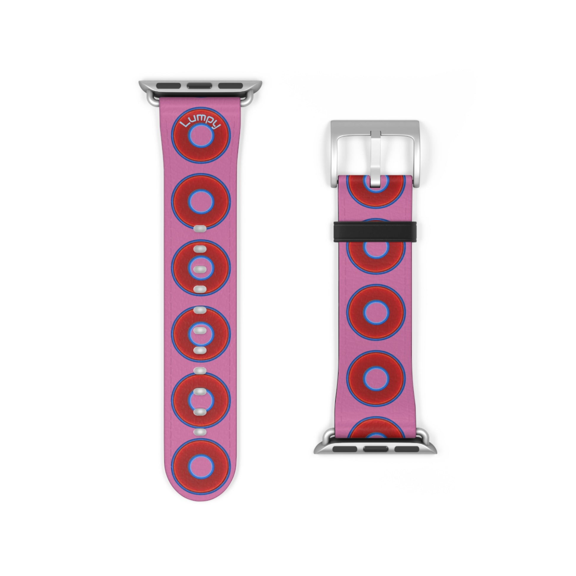 Lumpy Donut Wristband - compatible w/apple watch - red vivid donuts w/light pink background