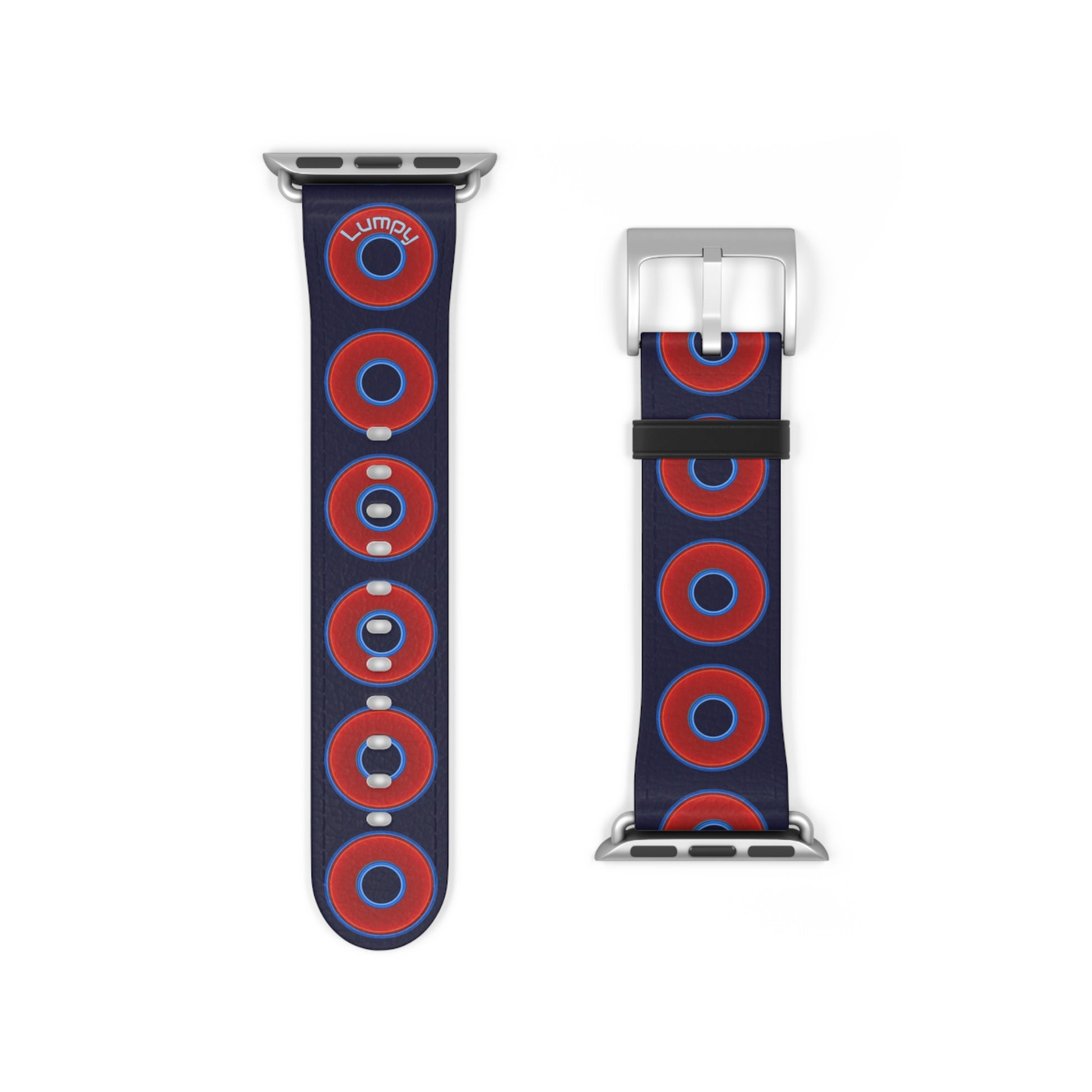 Lumpy Donut Wristband - compatible w/apple watch - red vivid donuts w/midnight blue background