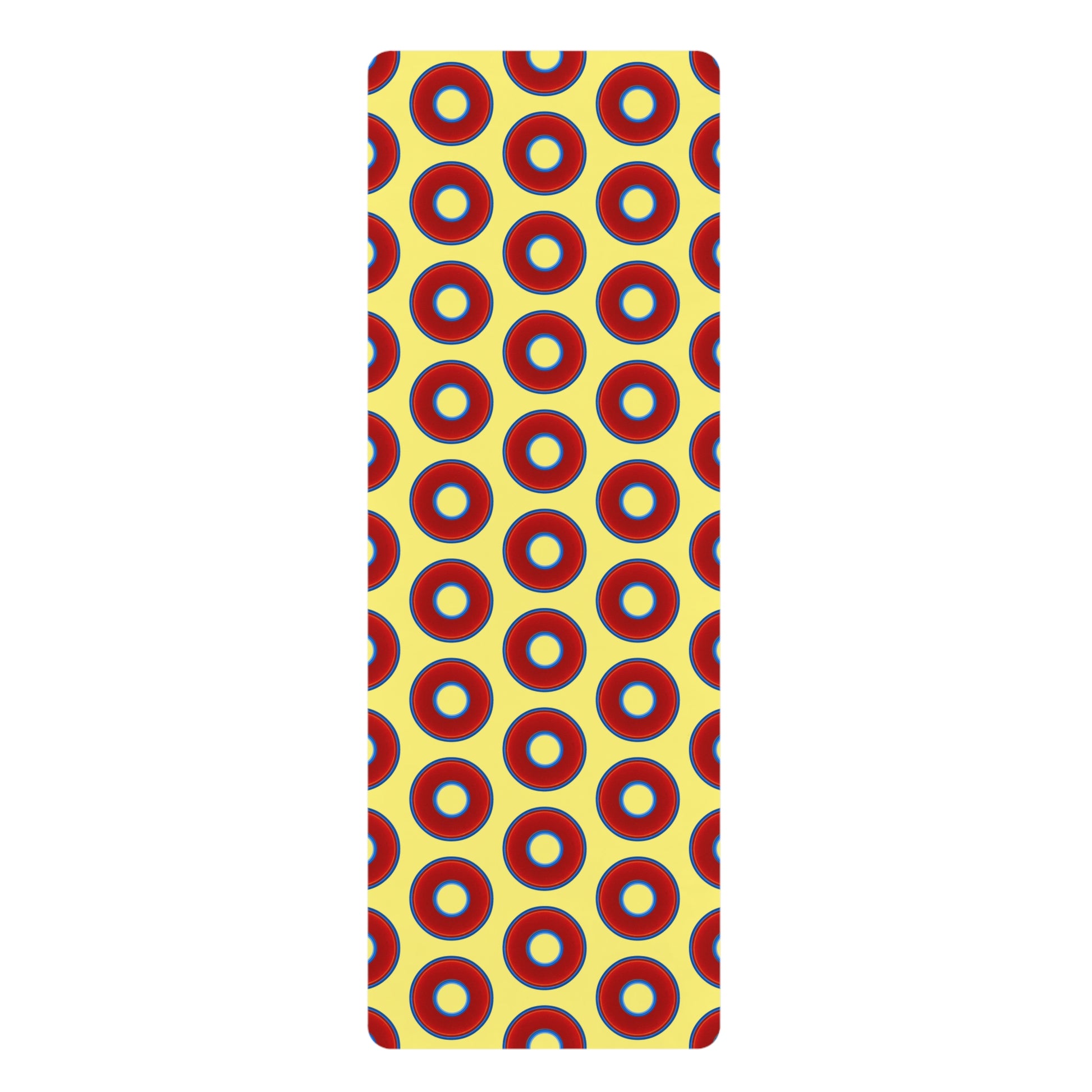 Lumpy Donut Yoga Mat :) - 24″ x 70" - vivid red donut print w/yellow background