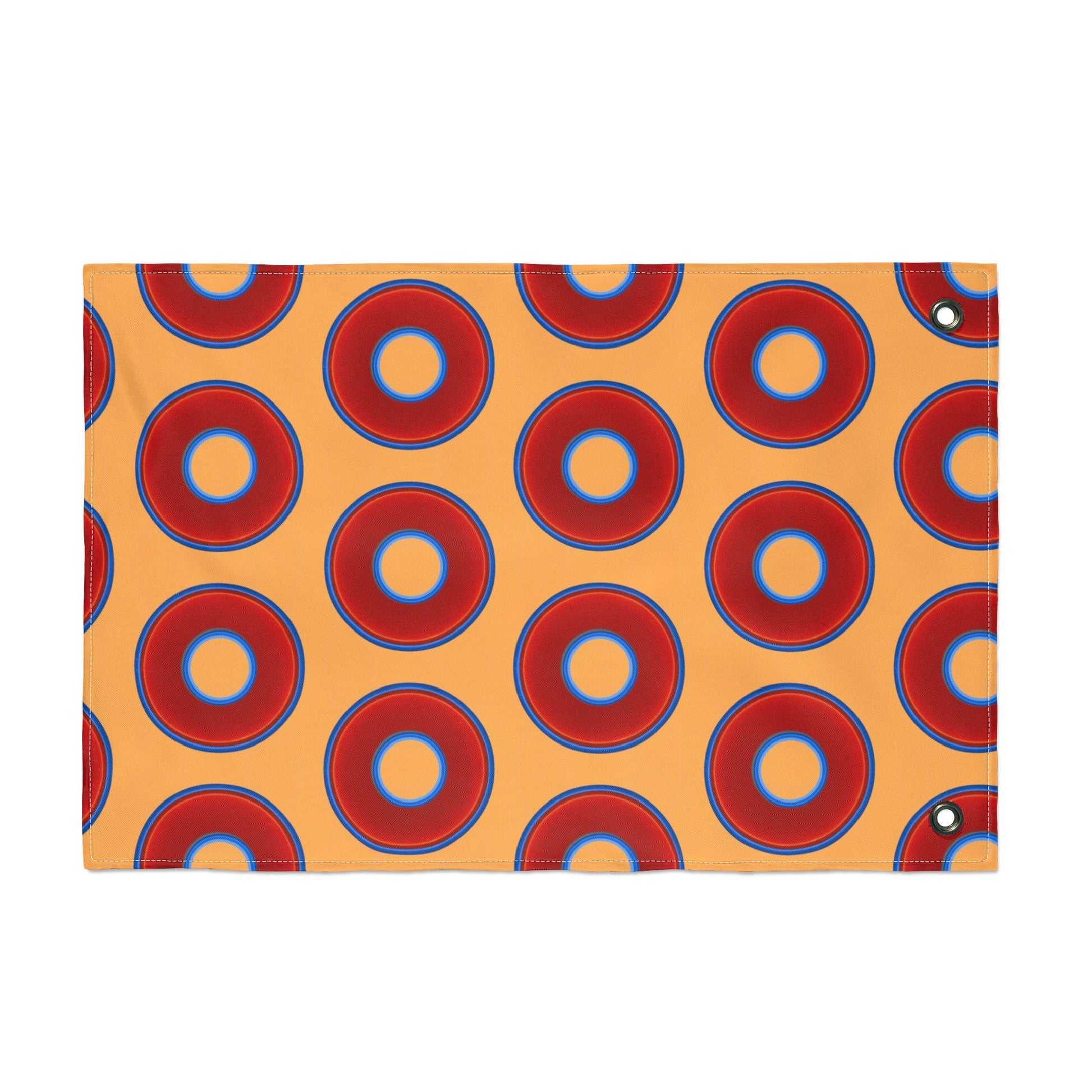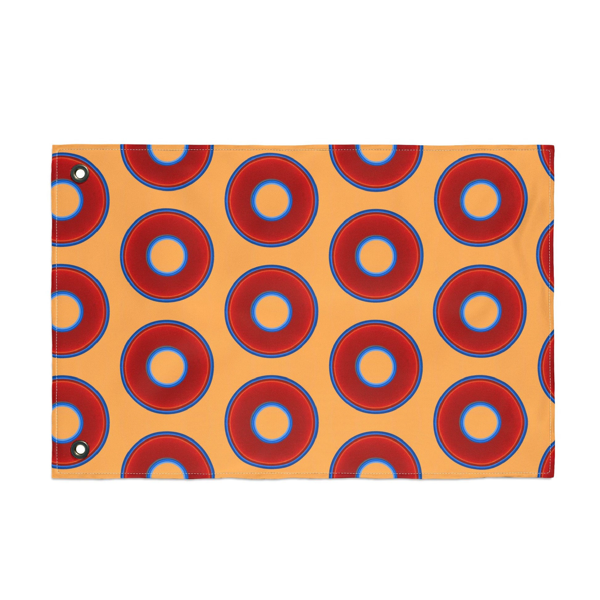 Lumpy Flagpole Sitters - Donut Flags [12" x 18"] - red vivid donut print w/creamsicle orange background