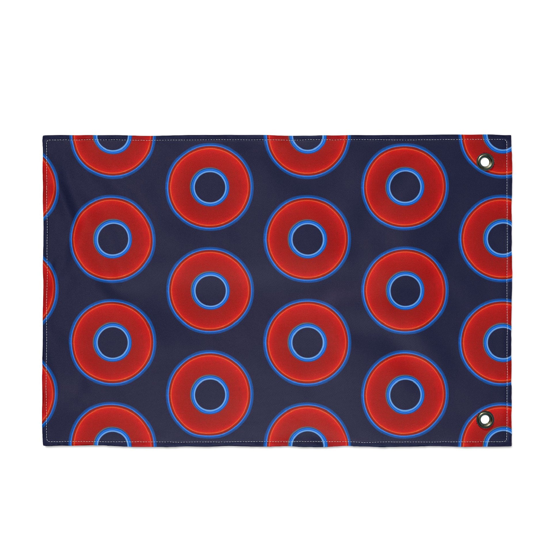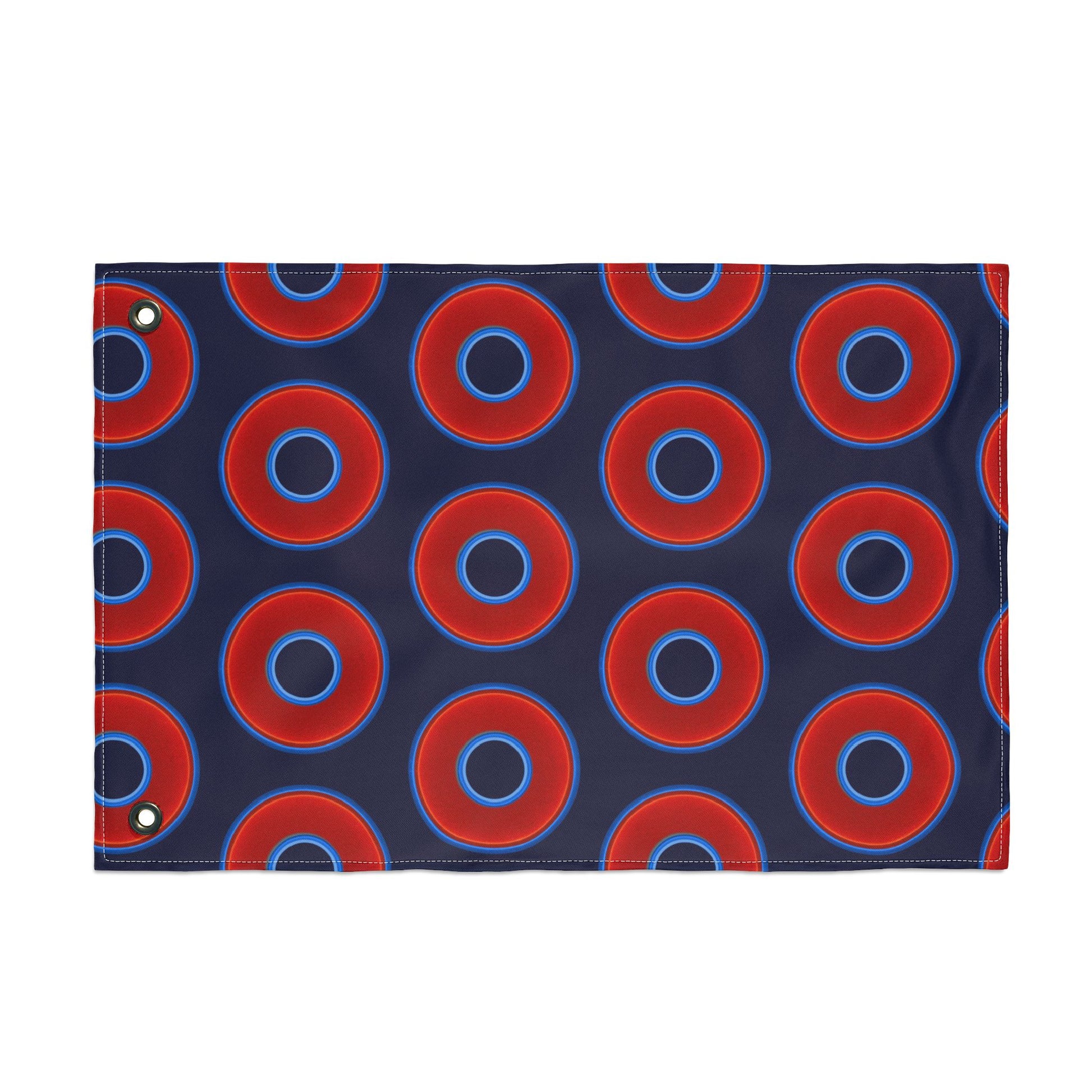 Lumpy Flagpole Sitters - Donut Flags [12" x 18"] - red vivid donut print w/dark navy blue background