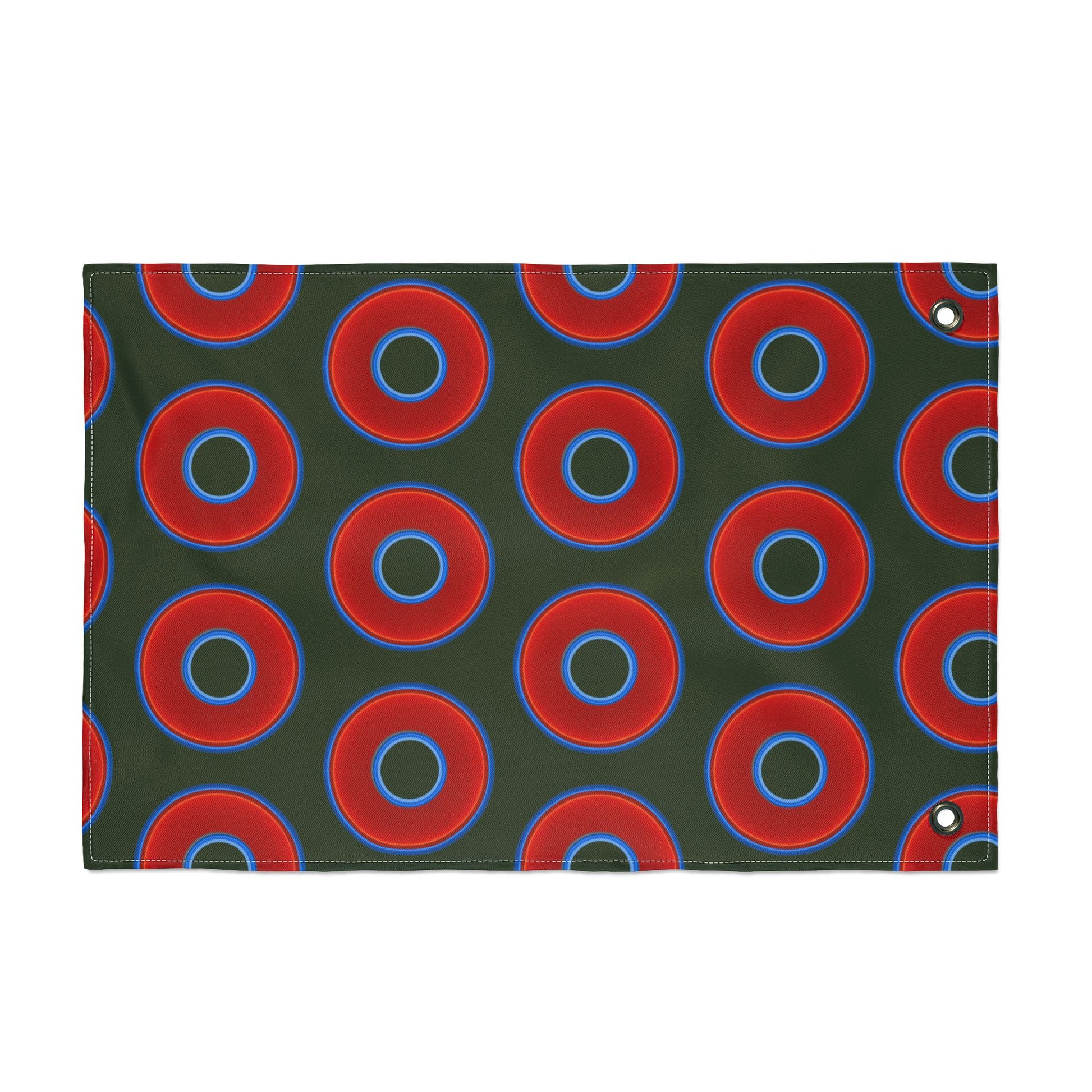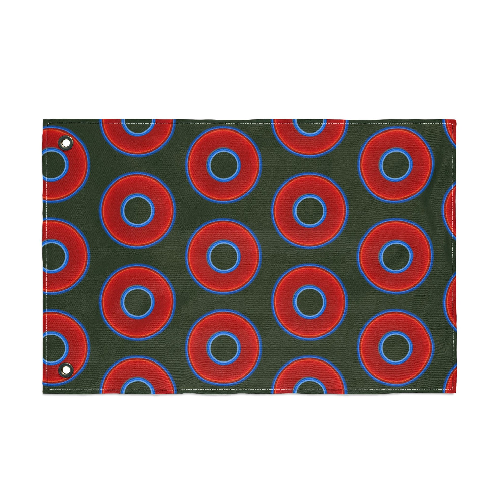 Lumpy Flagpole Sitters - Donut Flags [12" x 18"] - red vivid donut print w/deep forest green background
