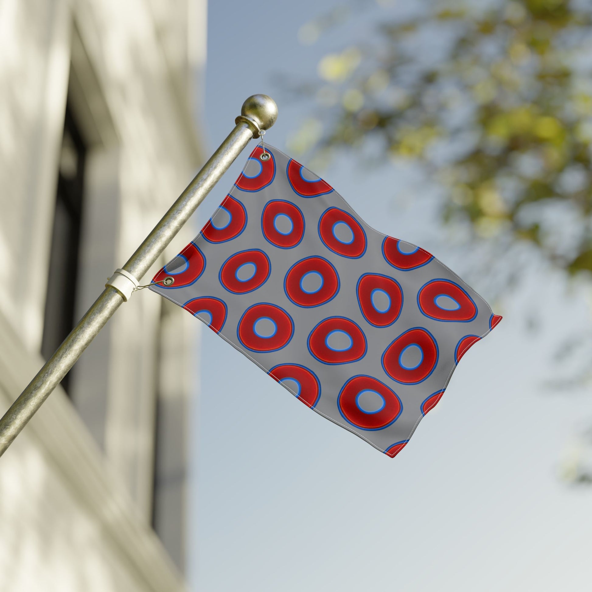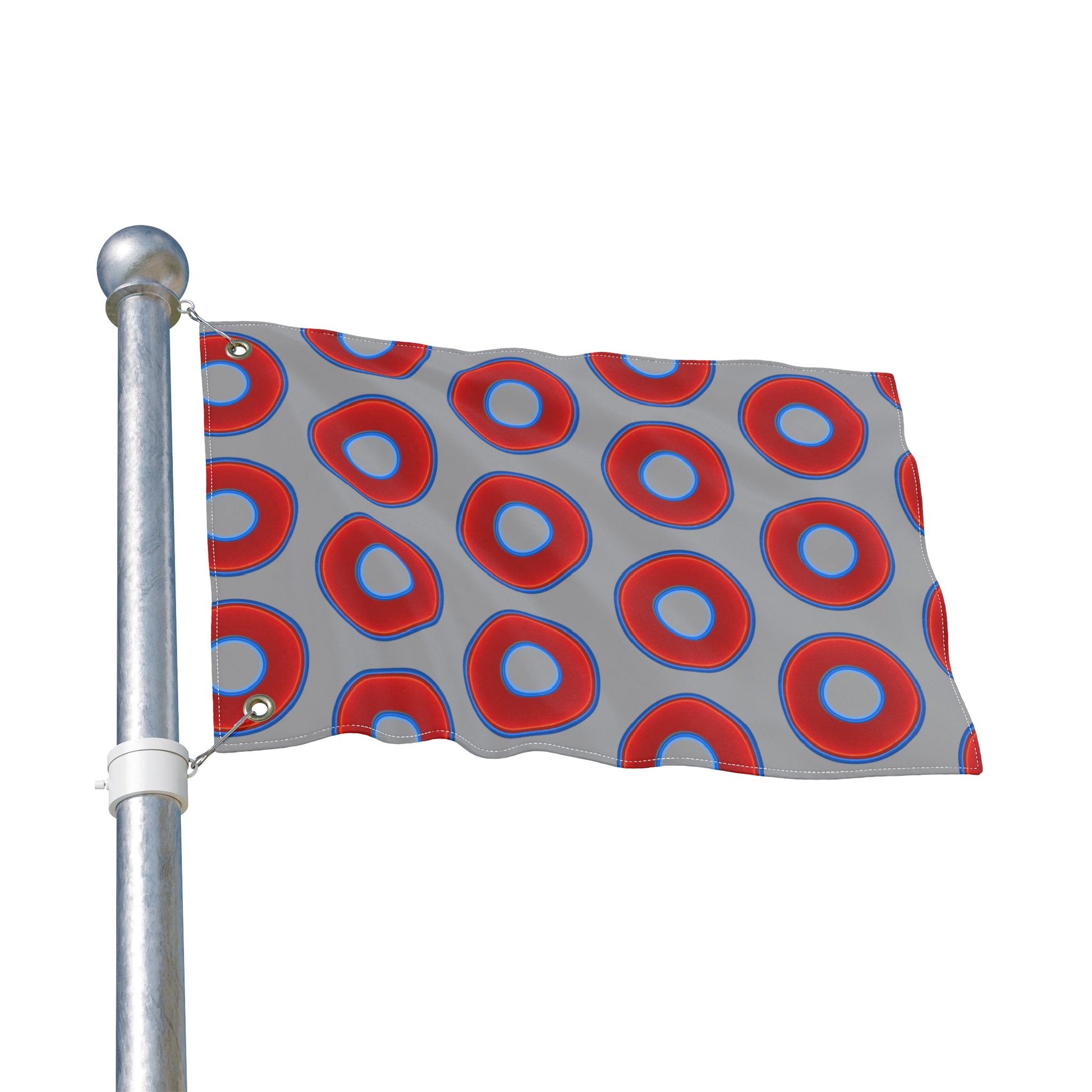 Lumpy Flagpole Sitters - Donut Flags [12" x 18"] - red vivid donut print w/gray background