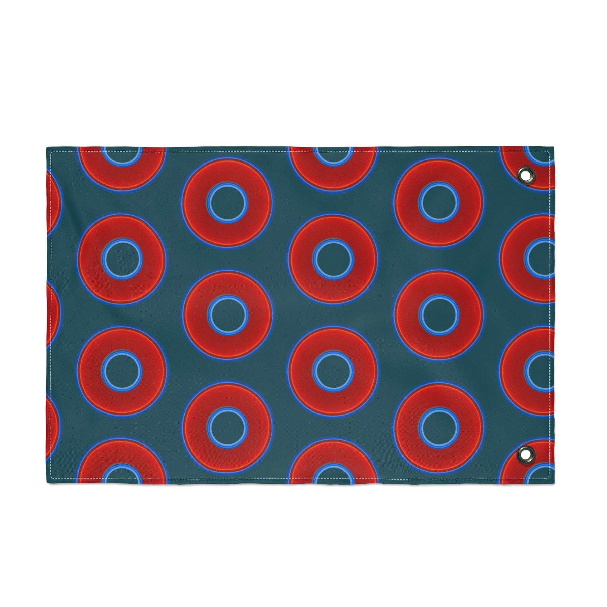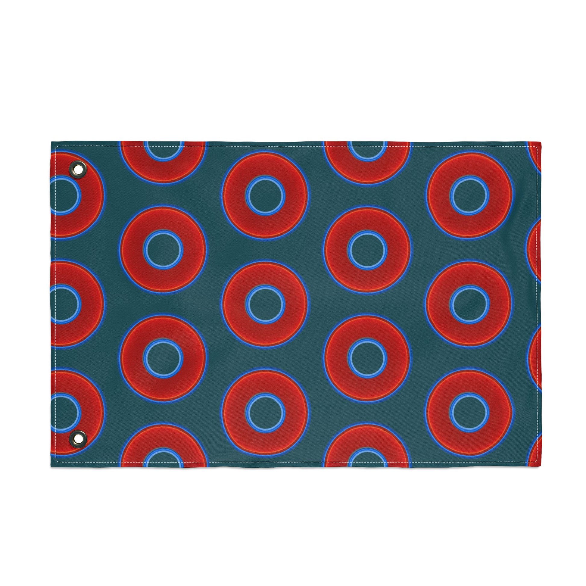 Lumpy Flagpole Sitters - Donut Flags [12" x 18"] - red vivid donut print w/midnight green background