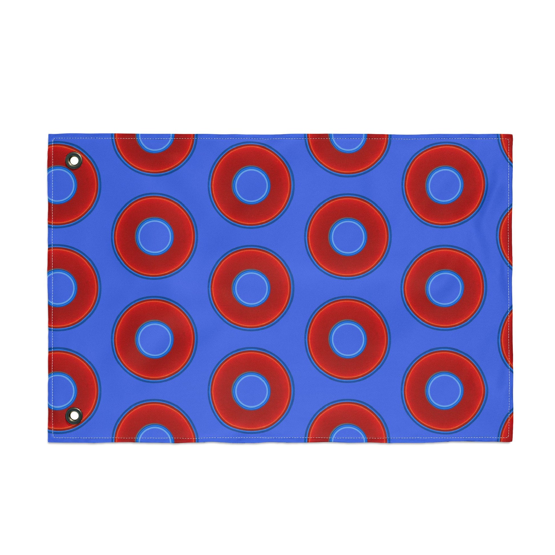 Lumpy Flagpole Sitters - Donut Flags [12" x 18"] - red vivid donut print w/royal blue background