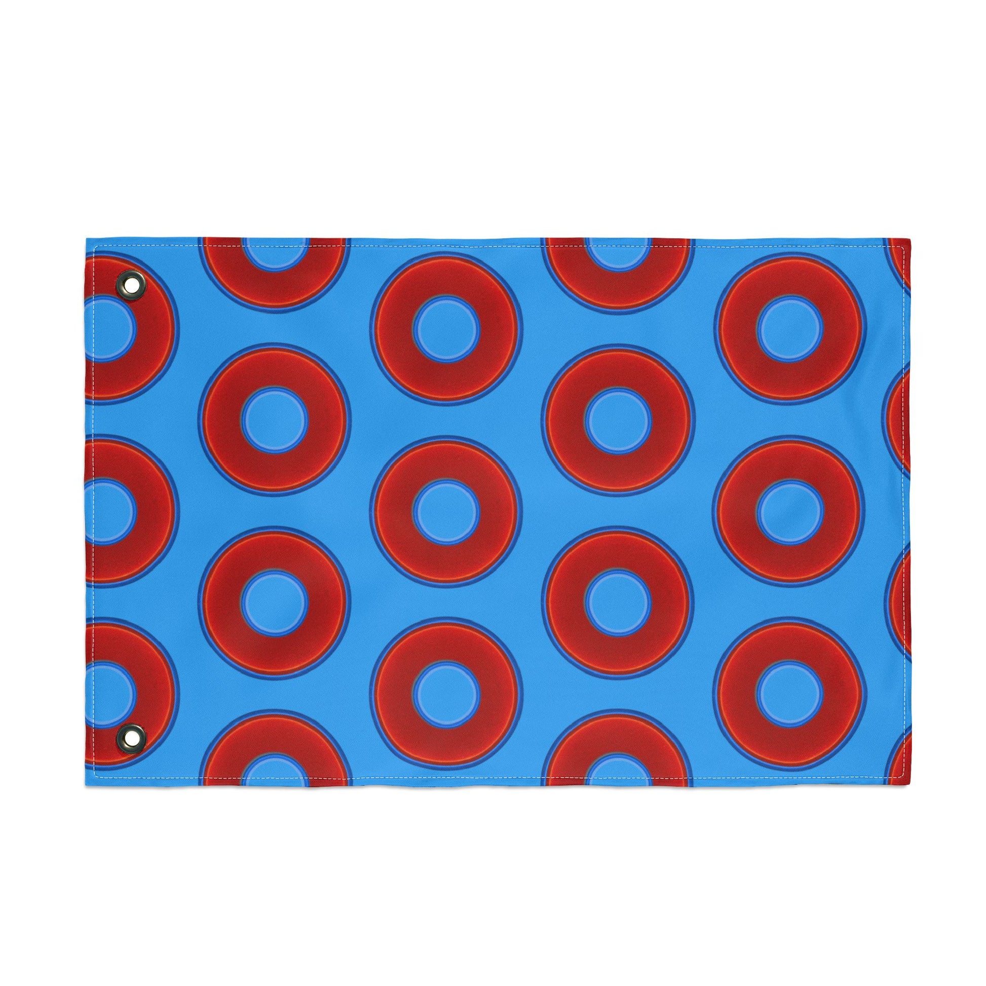 Lumpy Flagpole Sitters - Donut Flags [12" x 18"] - red vivid donut print w/sky royal blue background