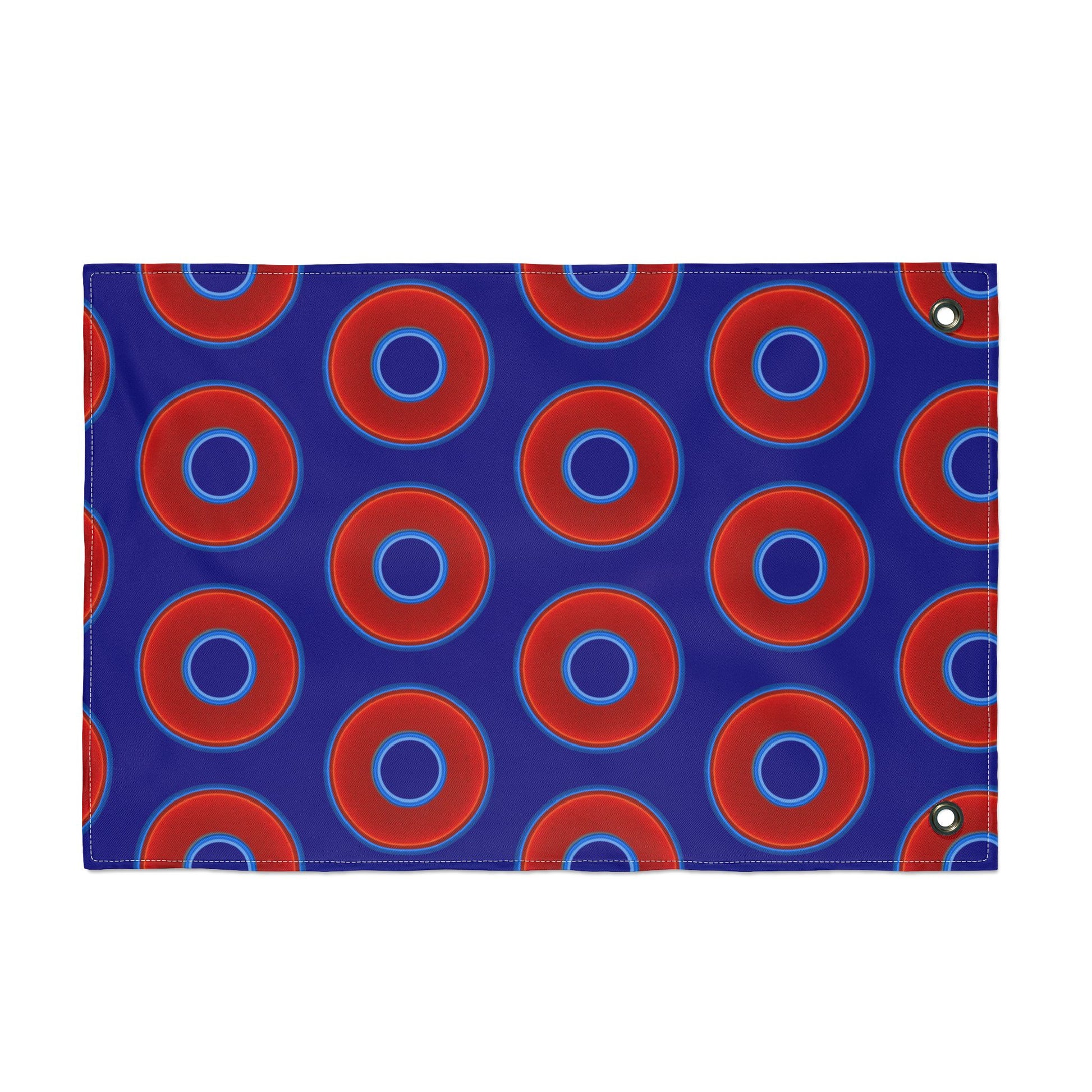 Lumpy Flagpole Sitters - Donut Flags [12" x 18"] - red vivid donut print w/vivid navy blue background