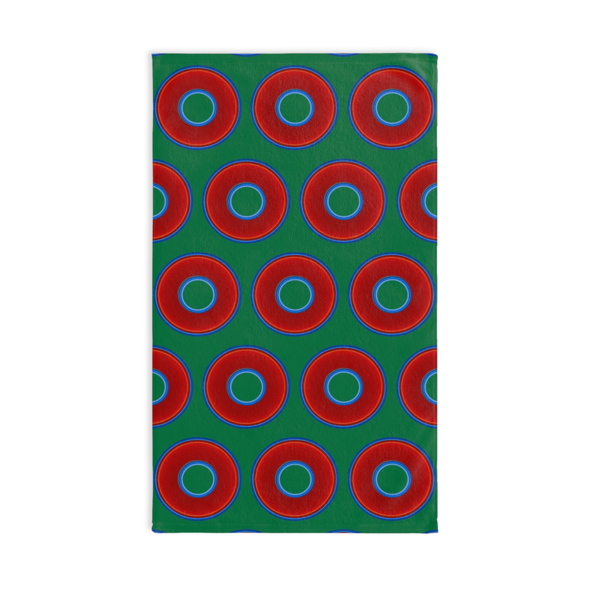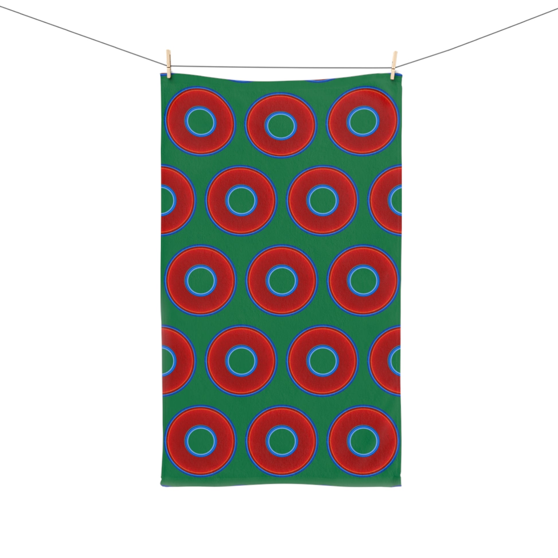 Lumpy Kitchen/Hand Towels - vivid red donuts w/green background
