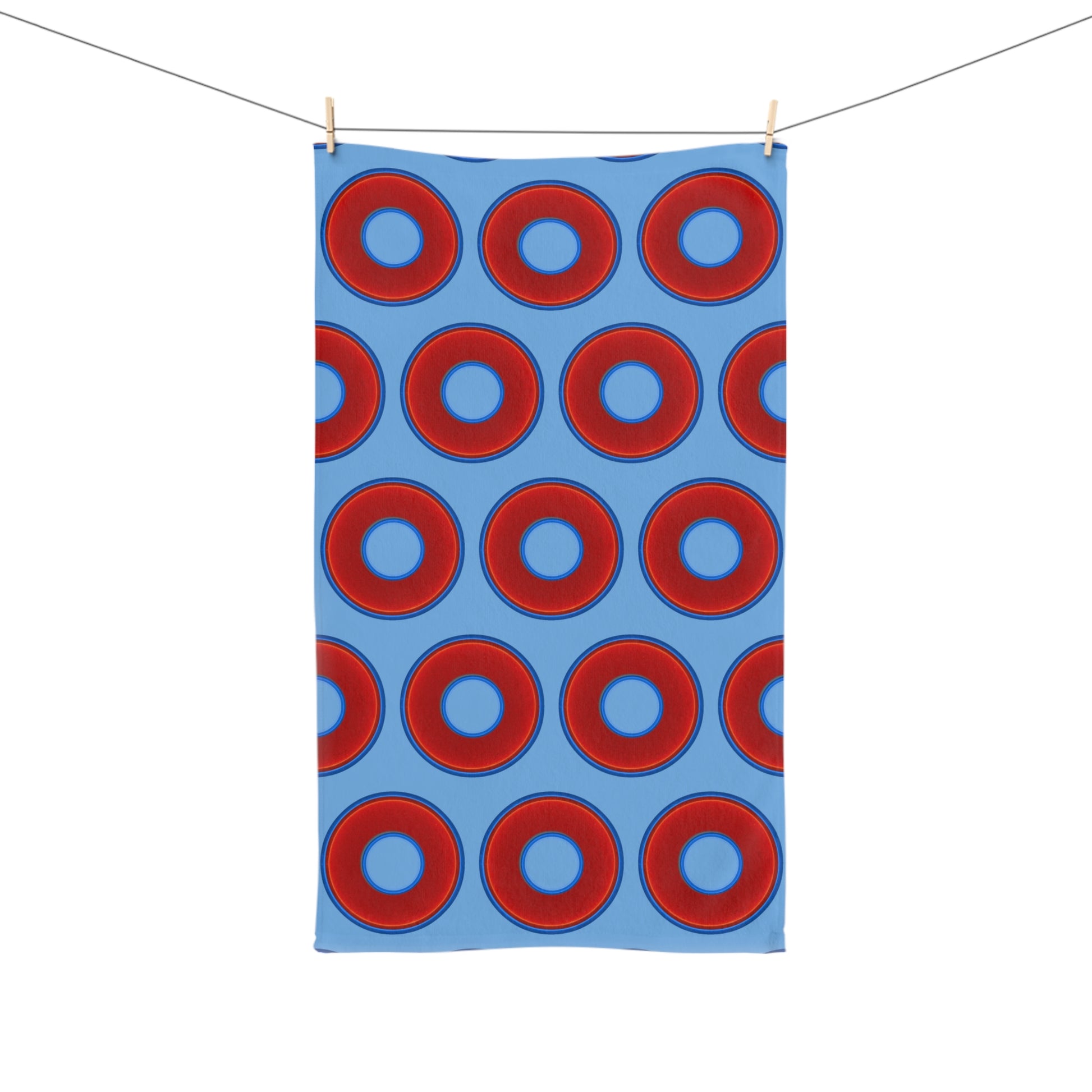 Lumpy Kitchen/Hand Towels - vivid red donuts w/light blue background