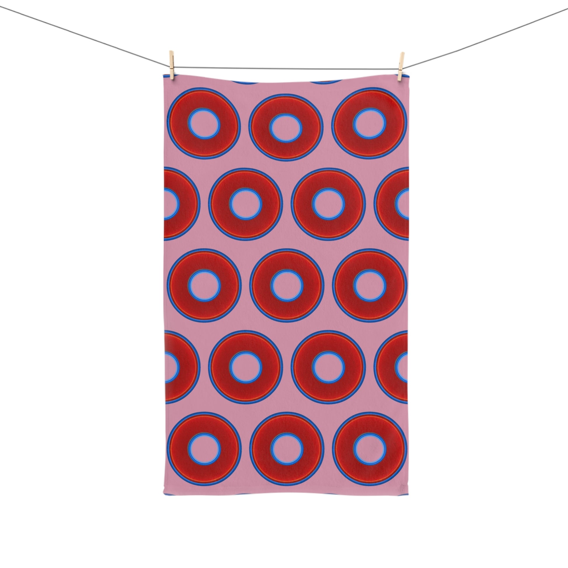 Lumpy Kitchen/Hand Towels - vivid red donuts w/pale magenta background