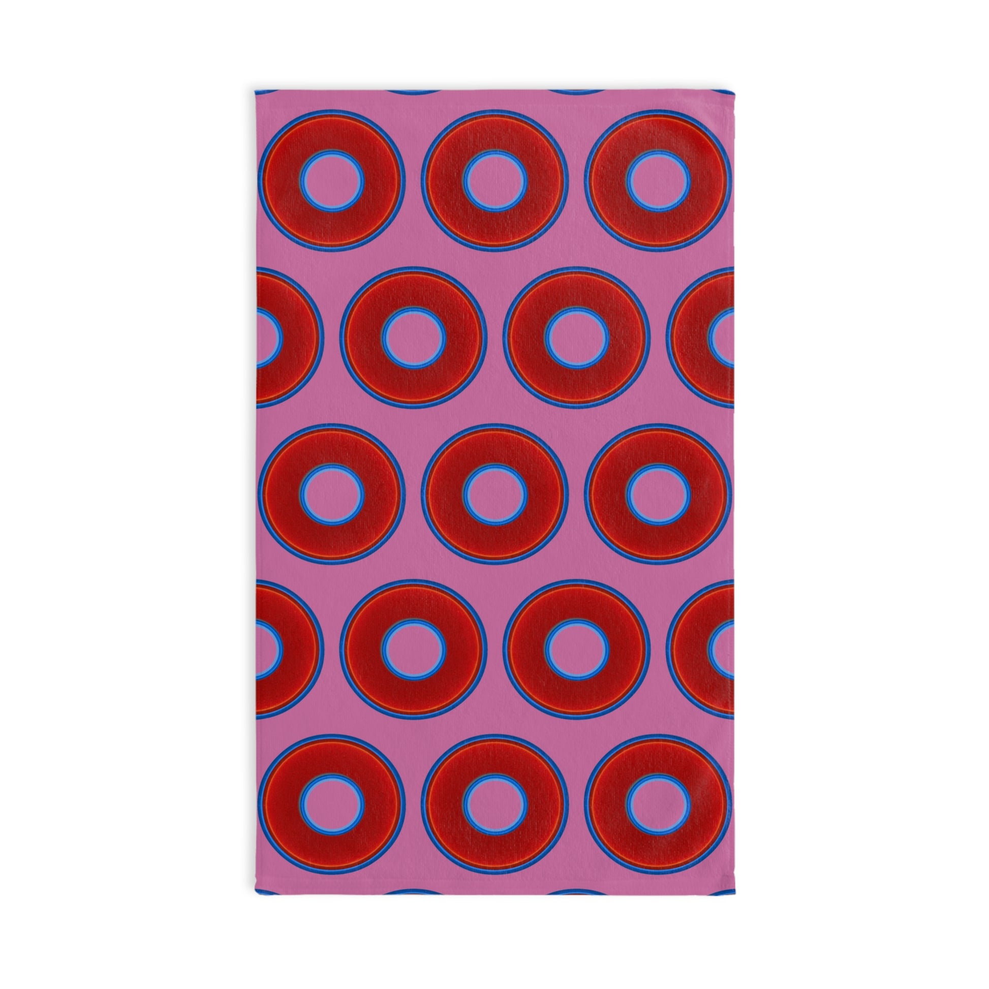 Lumpy Kitchen/Hand Towels - vivid red donuts w/pink background