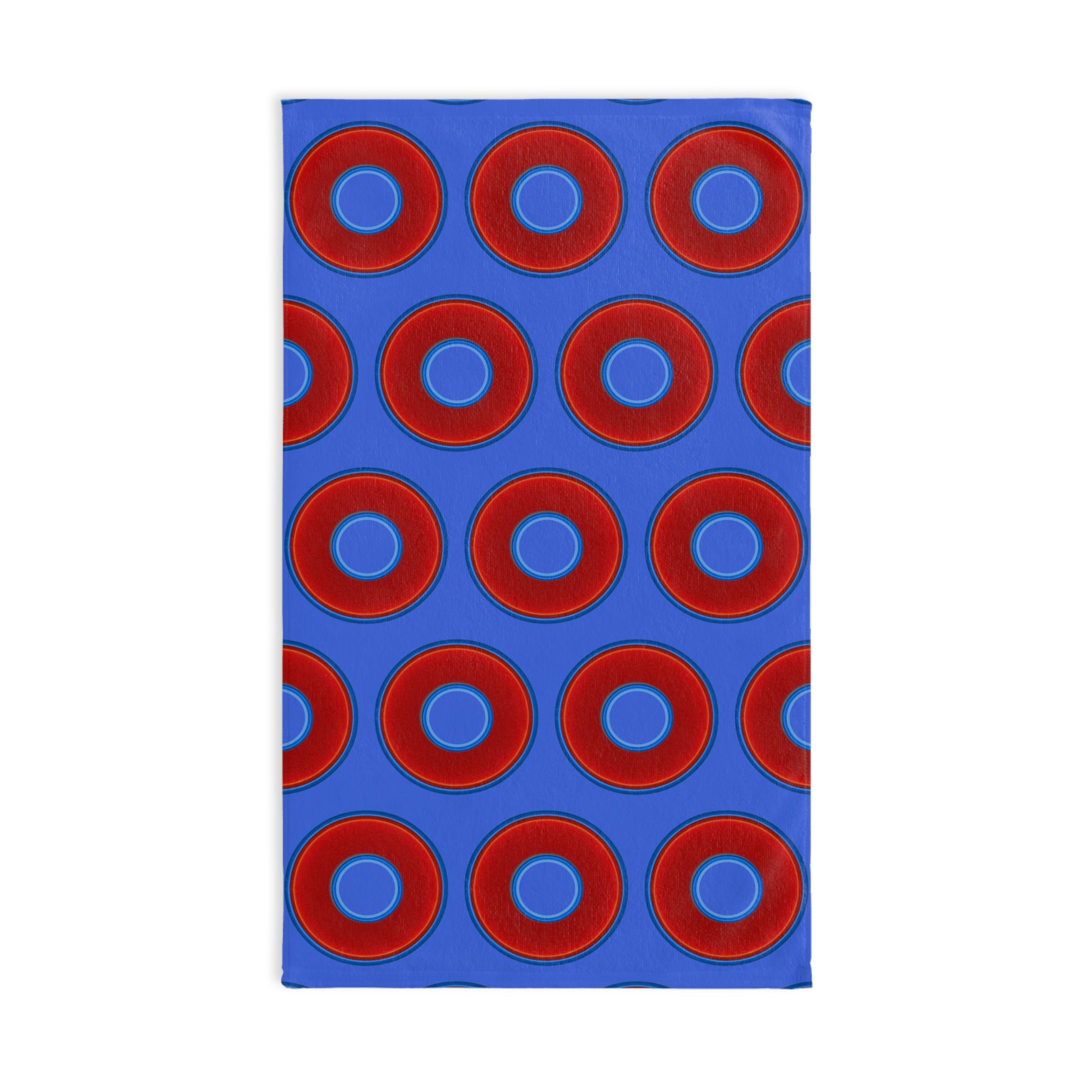 Lumpy Kitchen/Hand Towels - vivid red donuts w/royal blue background