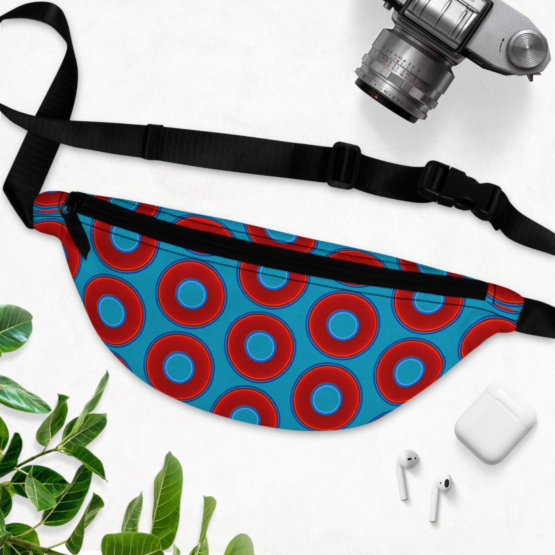 Lumpy Phanny Pack - vivid red donuts w/aquamarine blue background