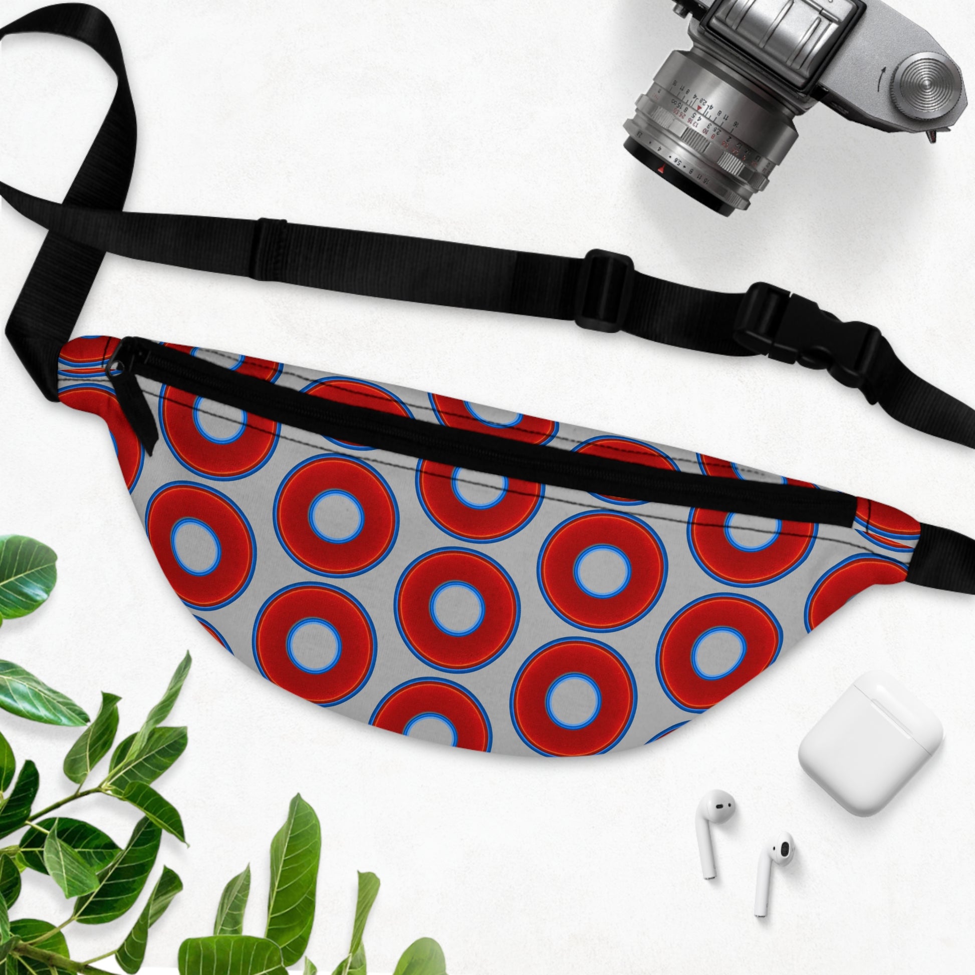 Lumpy Phanny Pack - vivid red donuts w/light gray background