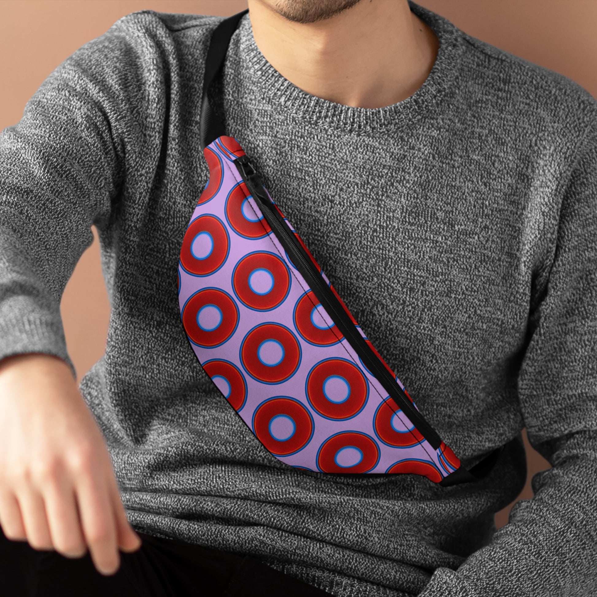 Lumpy Phanny Pack - vivid red donuts w/wisteria purple background