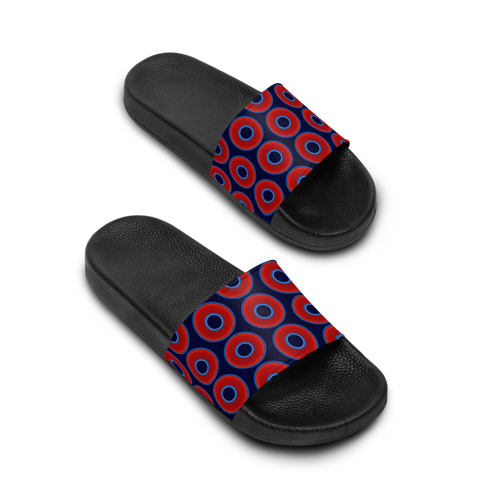 Lumpy Sandals - slip-ons - red vivid donuts w/dark navy blue background