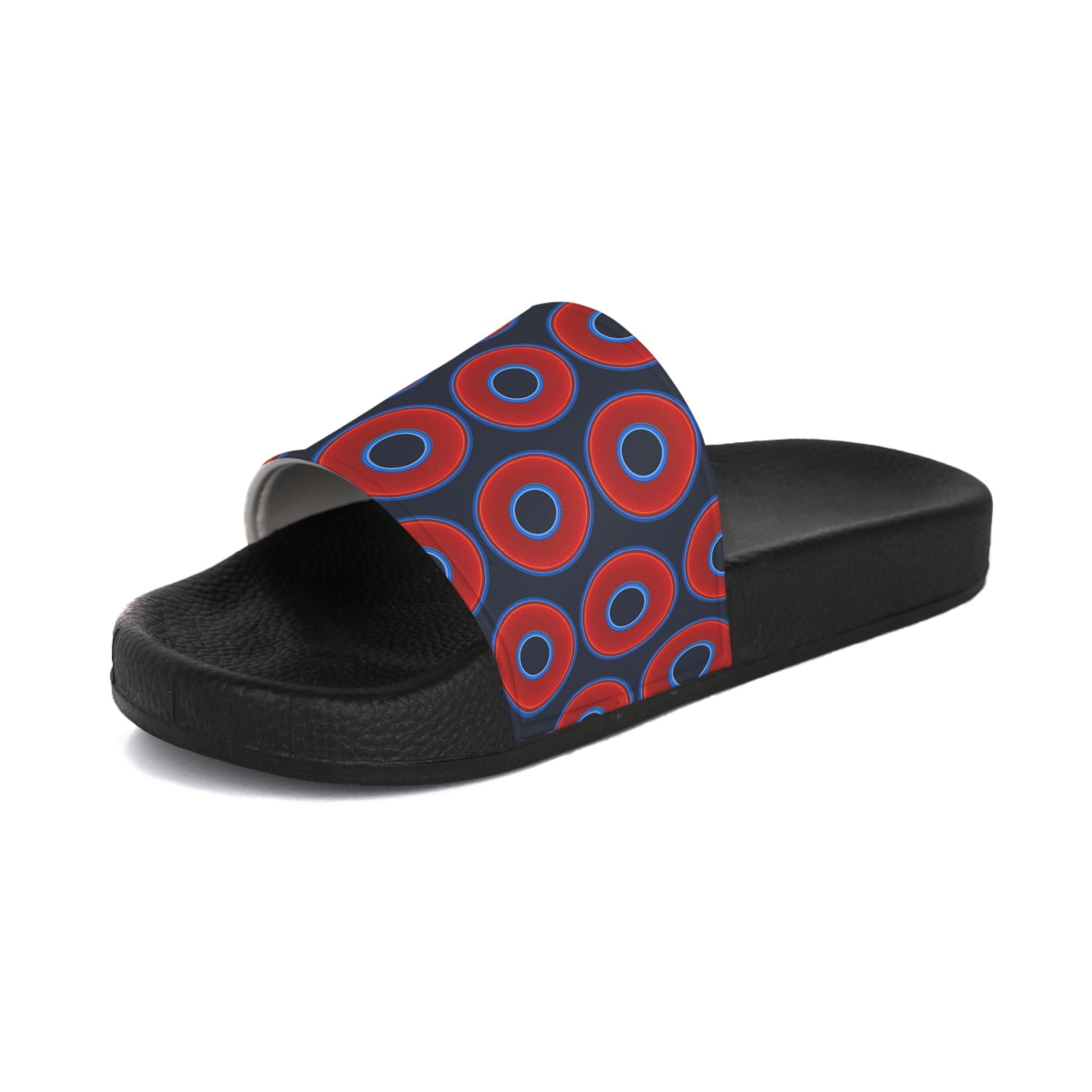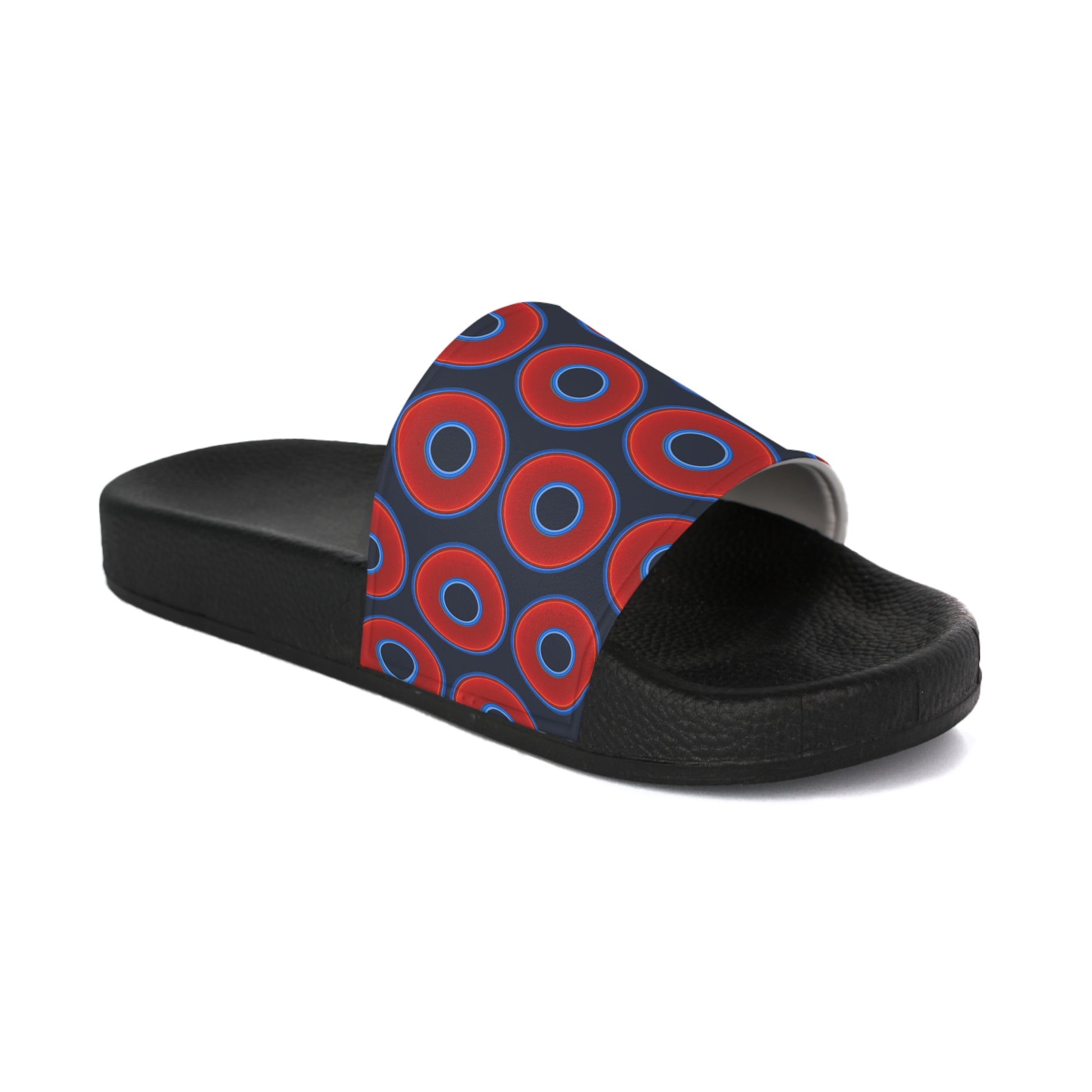 Lumpy Sandals - slip-ons - red vivid donuts w/dark teal elite blue background