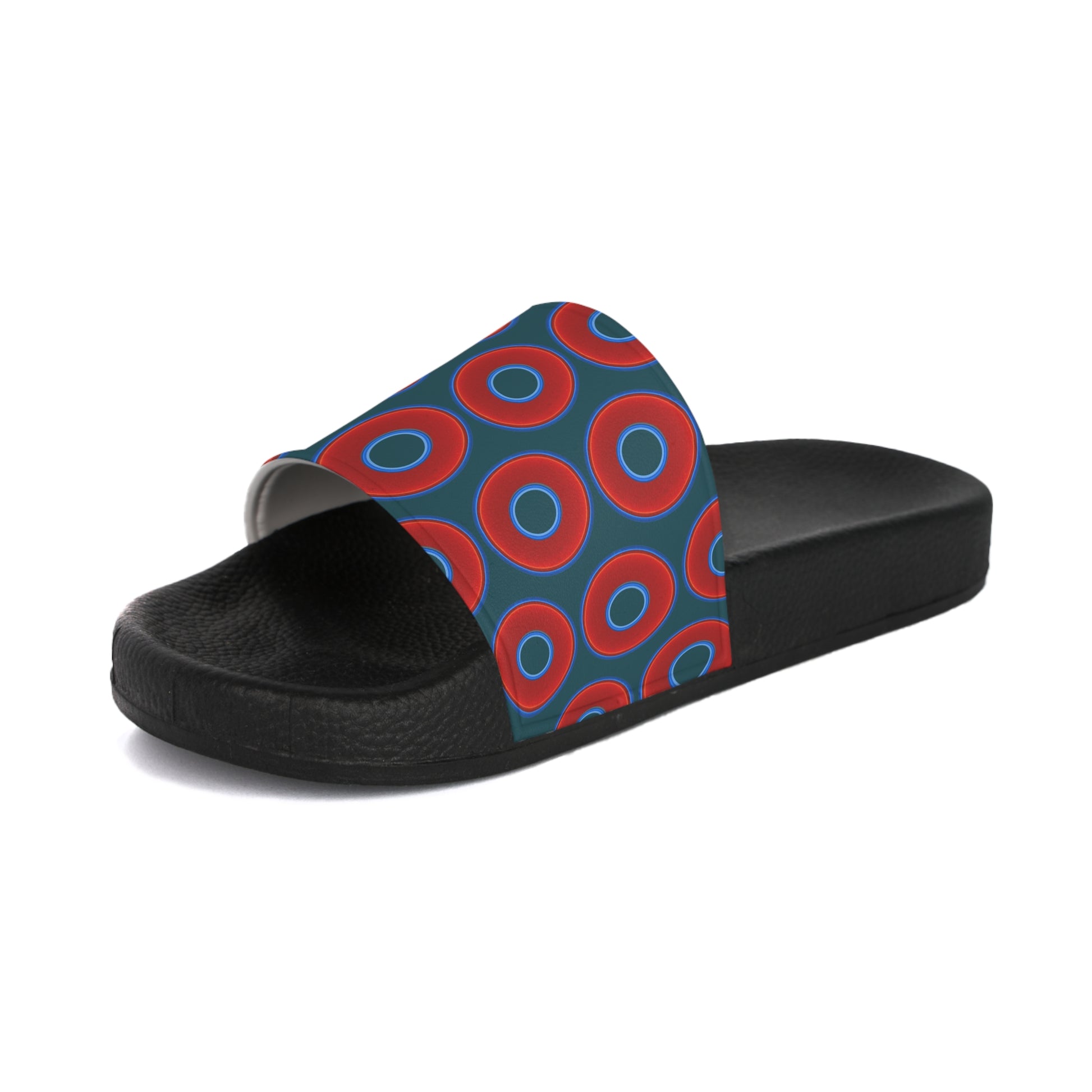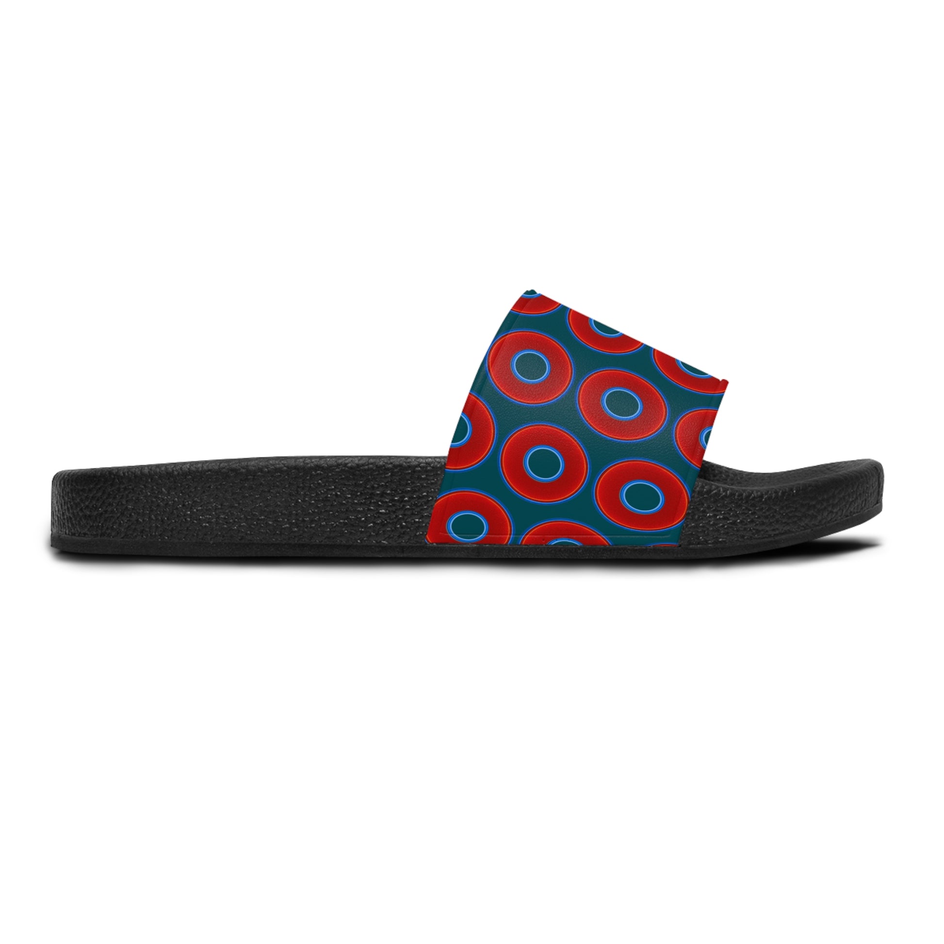 Lumpy Sandals - slip-ons - red vivid donuts w/midnight green background