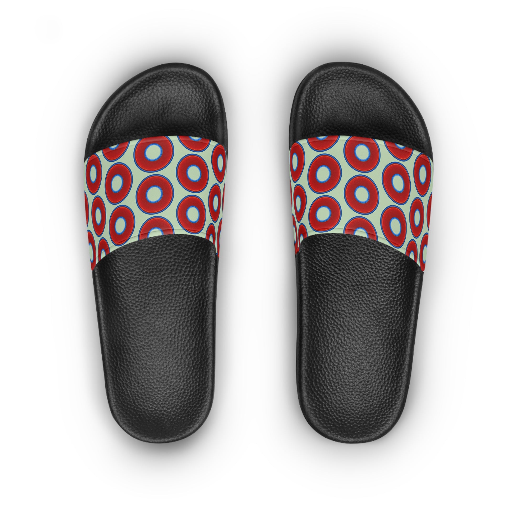Lumpy Sandals - slip-ons - red vivid donuts w/seafoam background