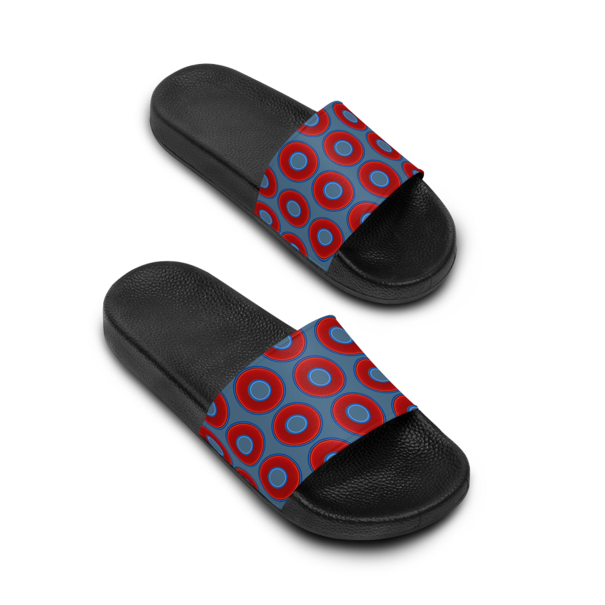 Lumpy Sandals - slip-ons - red vivid donuts w/steel blue background