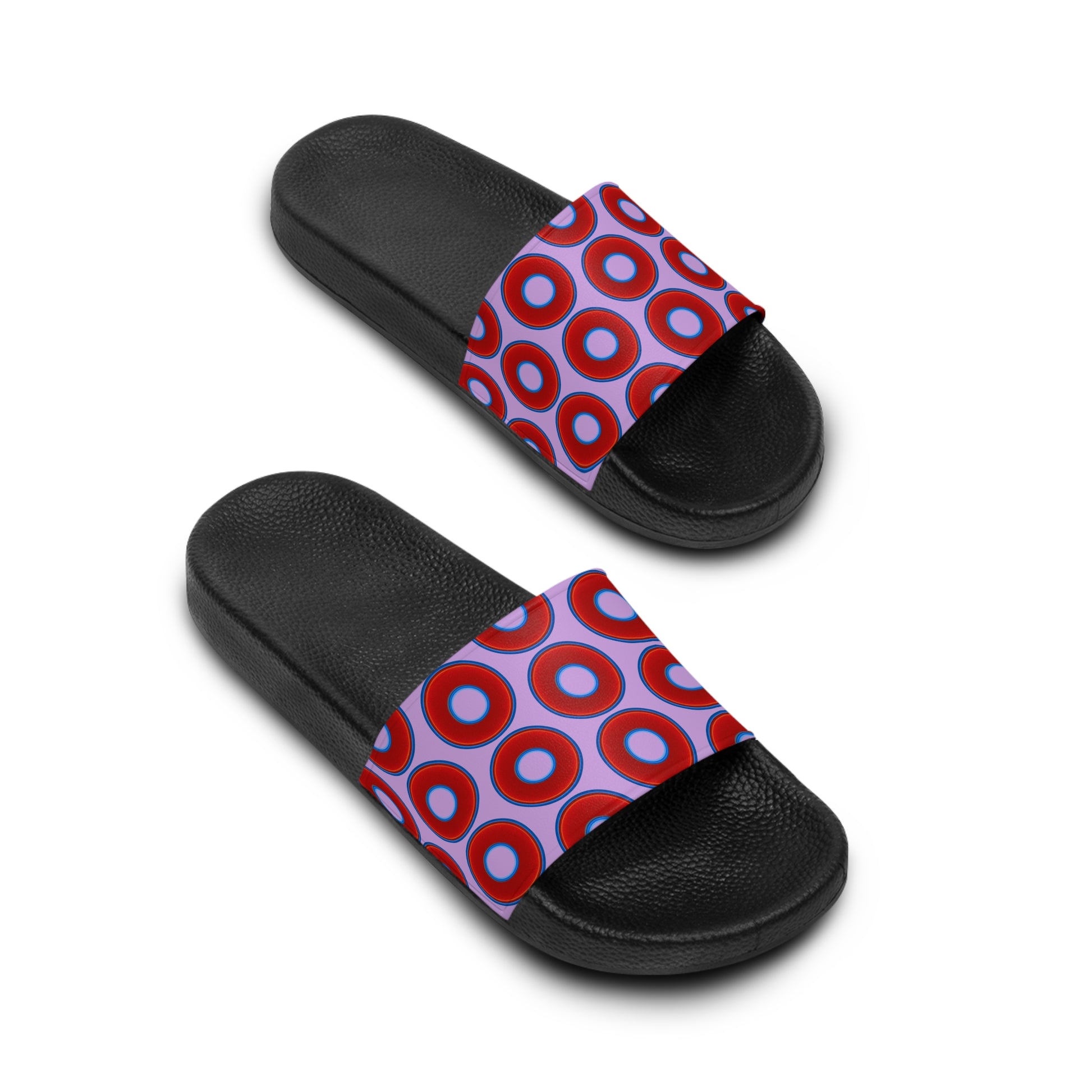Lumpy Sandals - slip-ons - red vivid donuts w/wisteria purple background