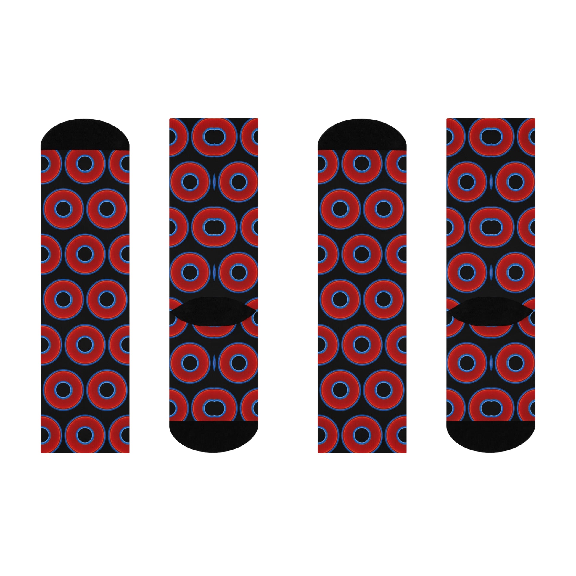Lumpy Sox - cushioned crew - vivid red donut print w/black background