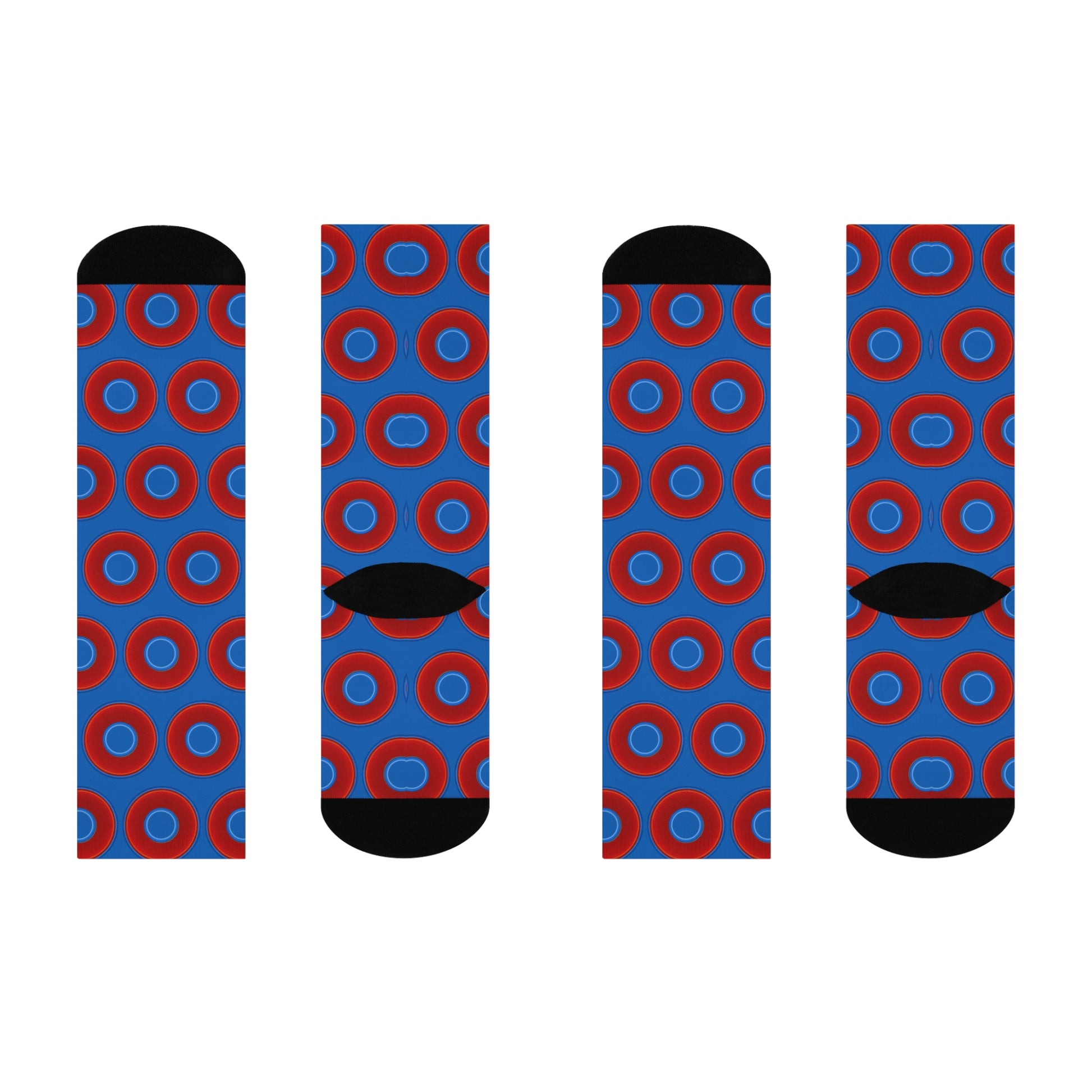 Super comfy cushioned crew socks... but donut print, the Lump's way. With super-sweet donuts!