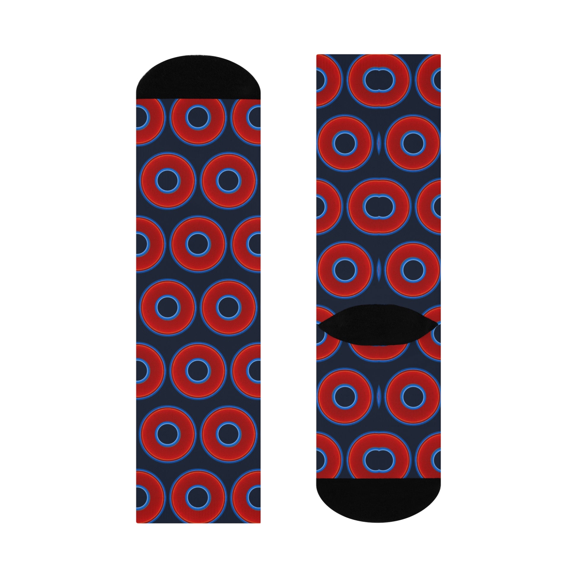 Lumpy Sox - cushioned crew - vivid red donut print w/dark teal blue elite background