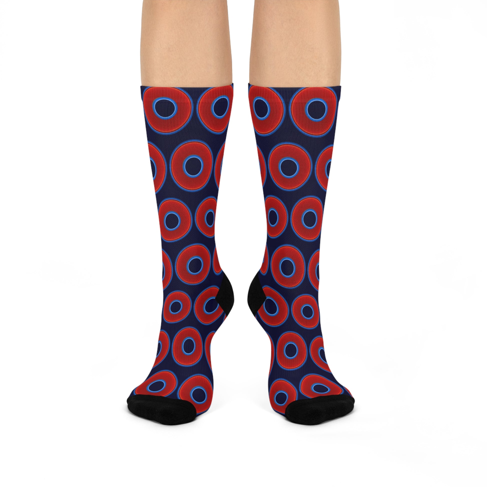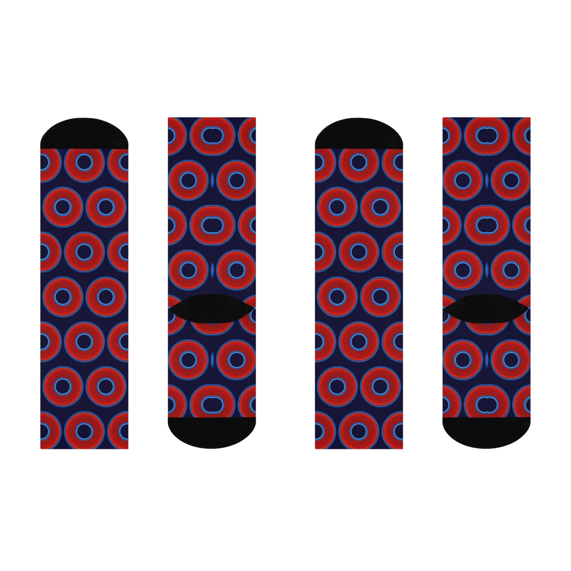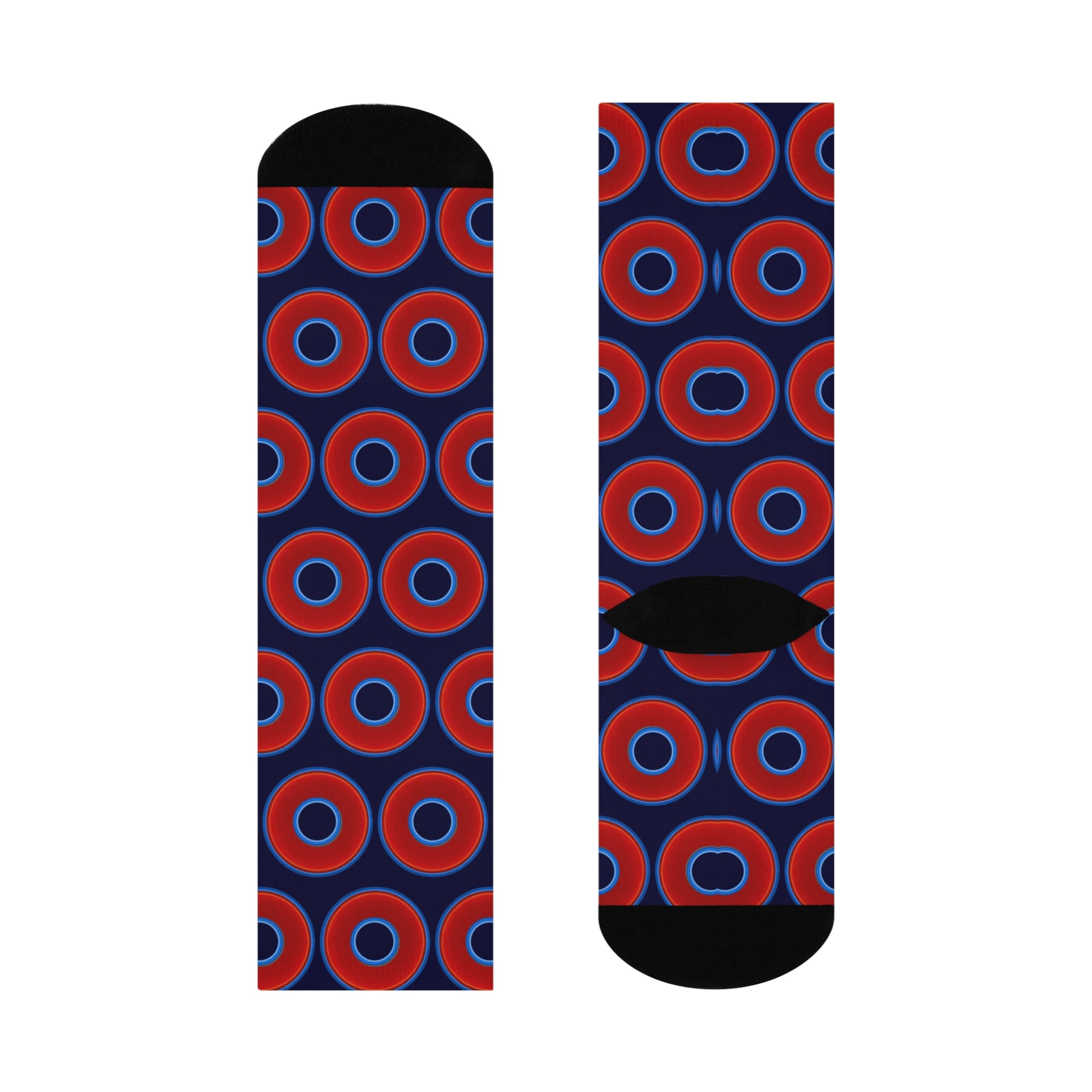 Lumpy Sox - cushioned crew - vivid red donut print w/midnight blue background