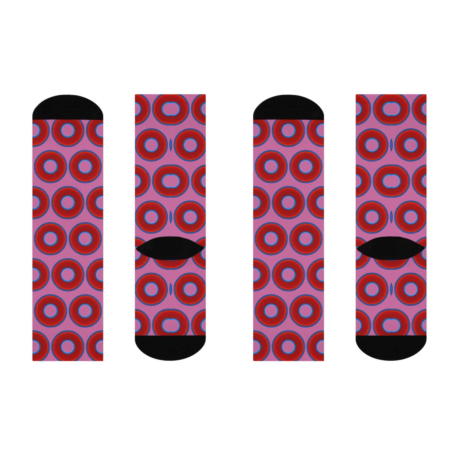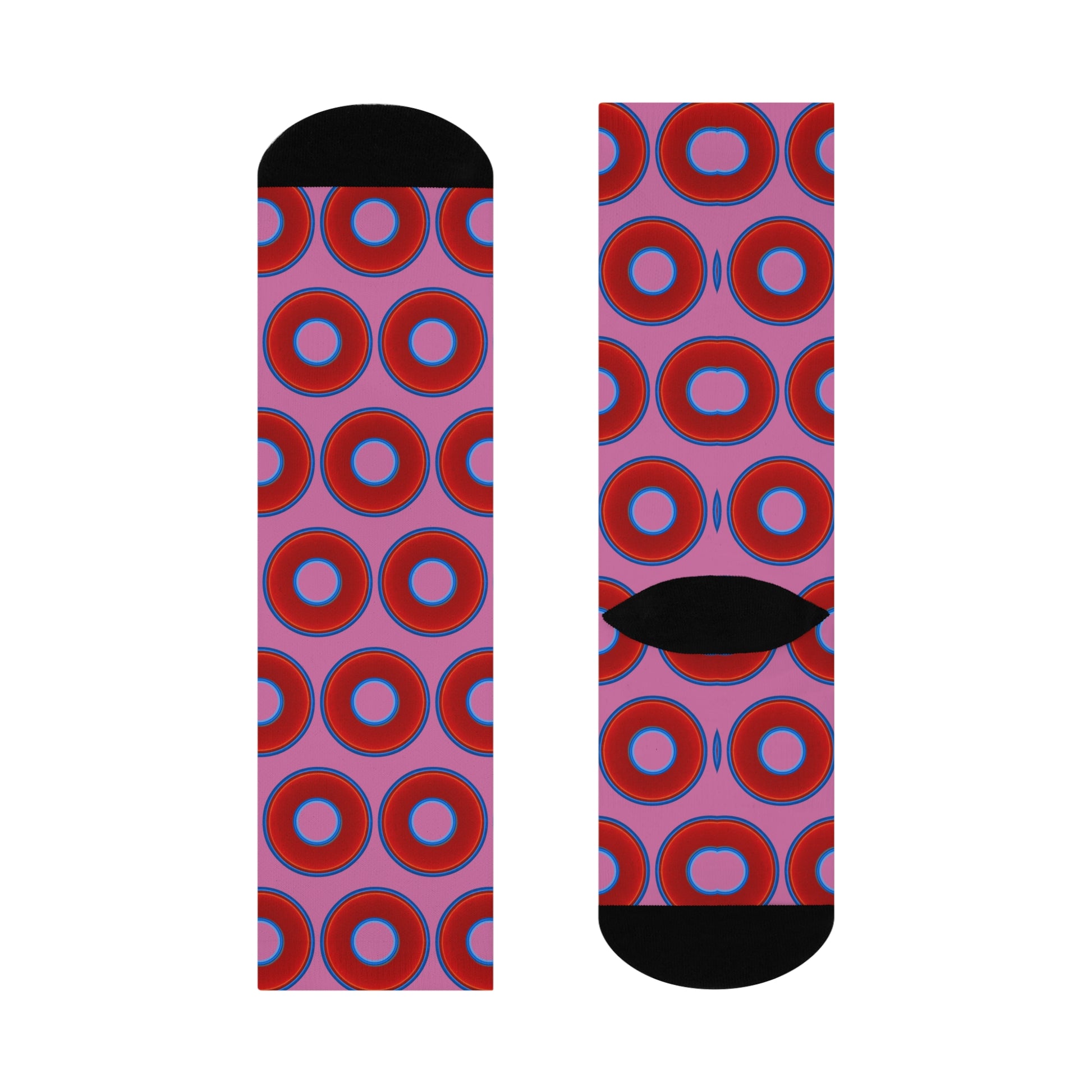 Lumpy Sox - cushioned crew - vivid red donut print w/pink background