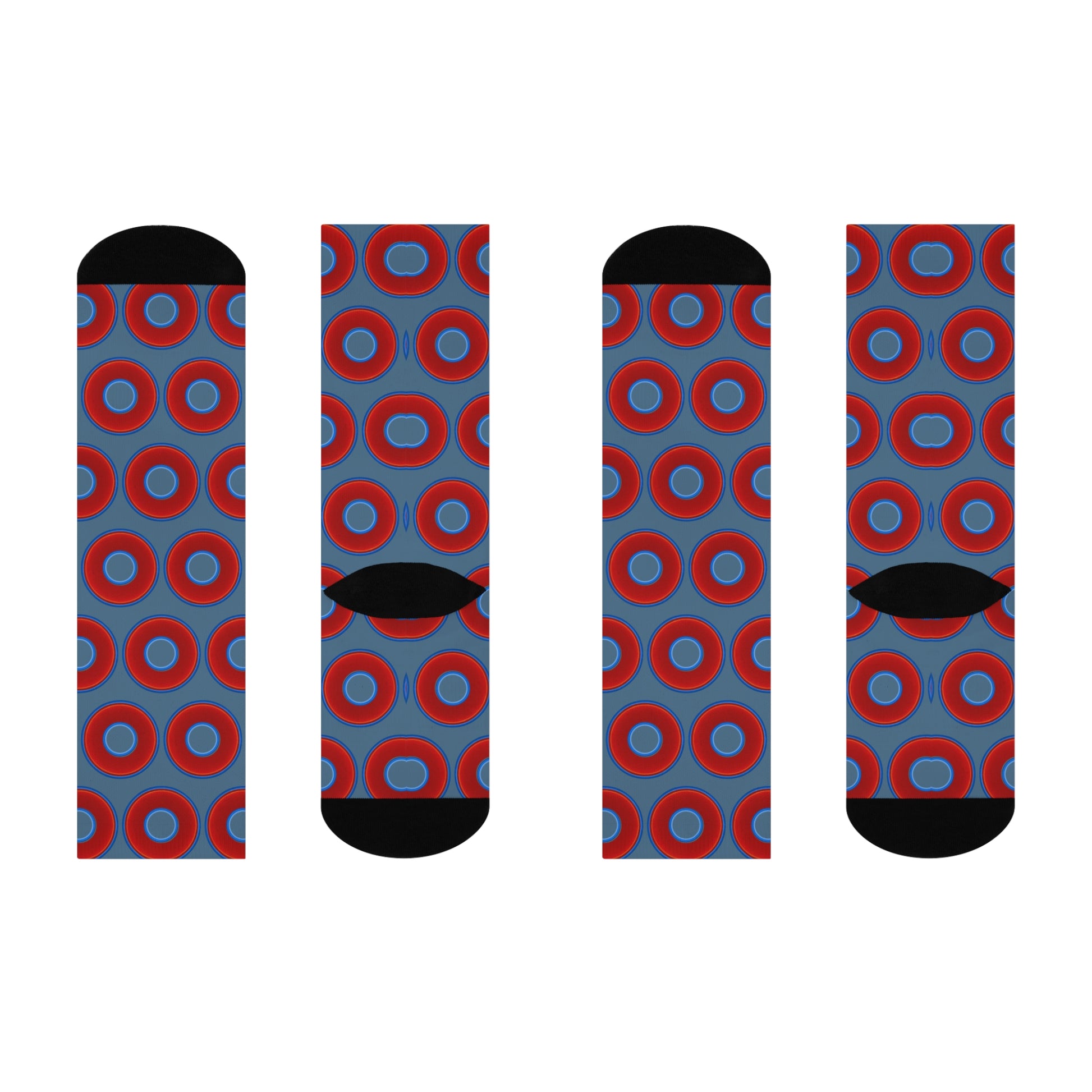 Lumpy Sox - cushioned crew - vivid red donut print w/steel blue background
