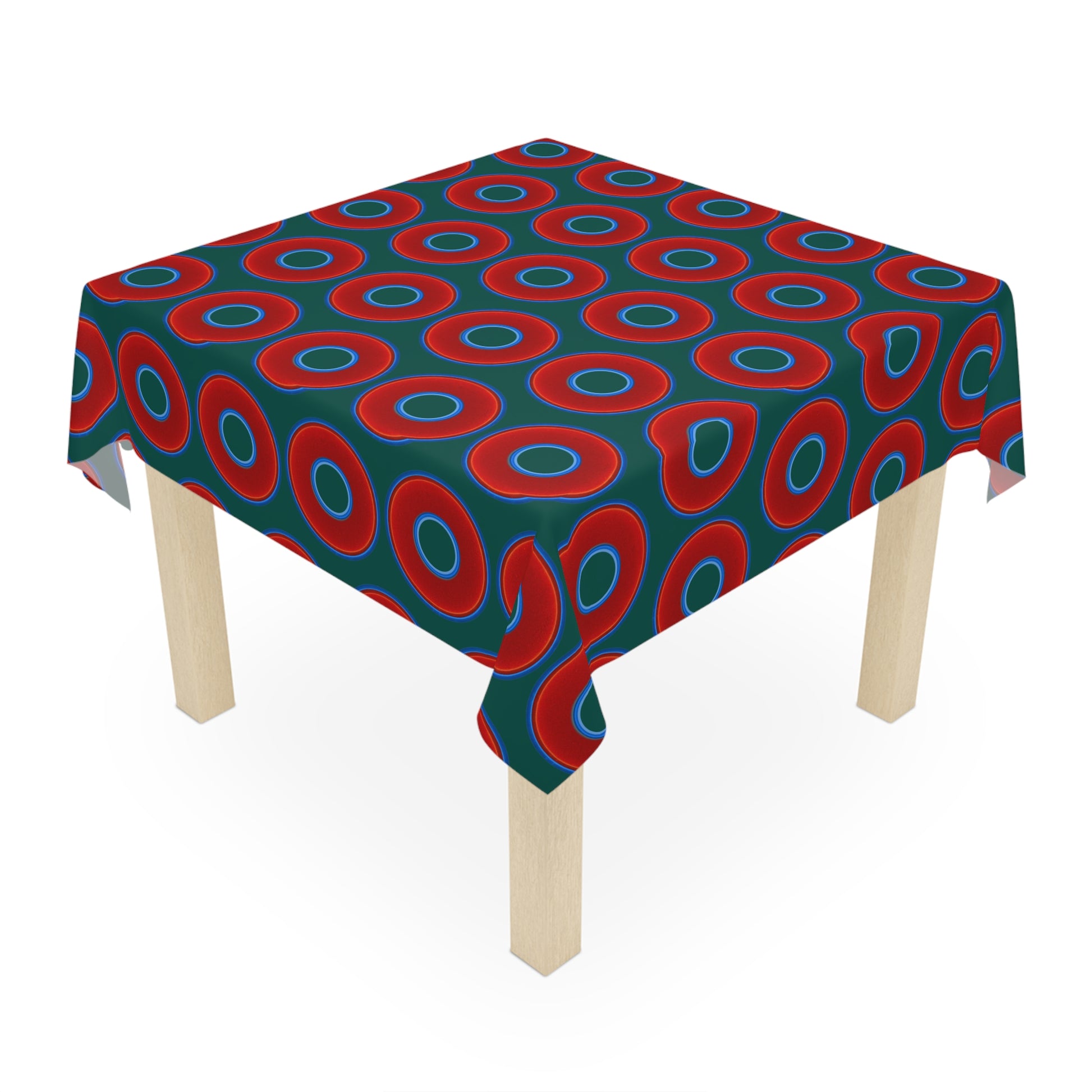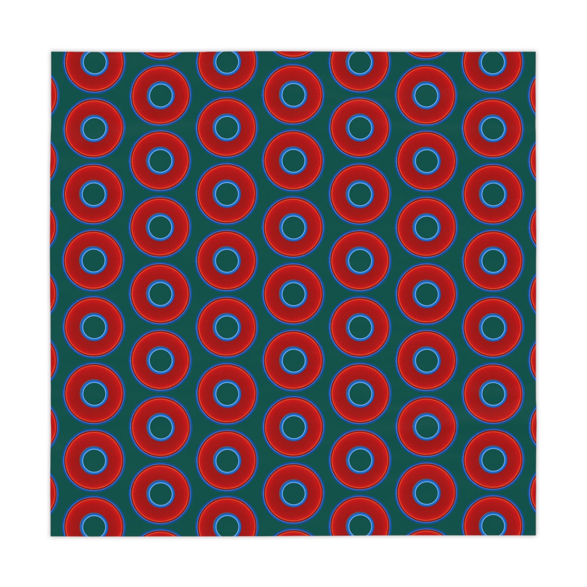 Lumpy Tablecloth - 55.1" x 55.1" - vivid red donuts w/dark Fenway green background