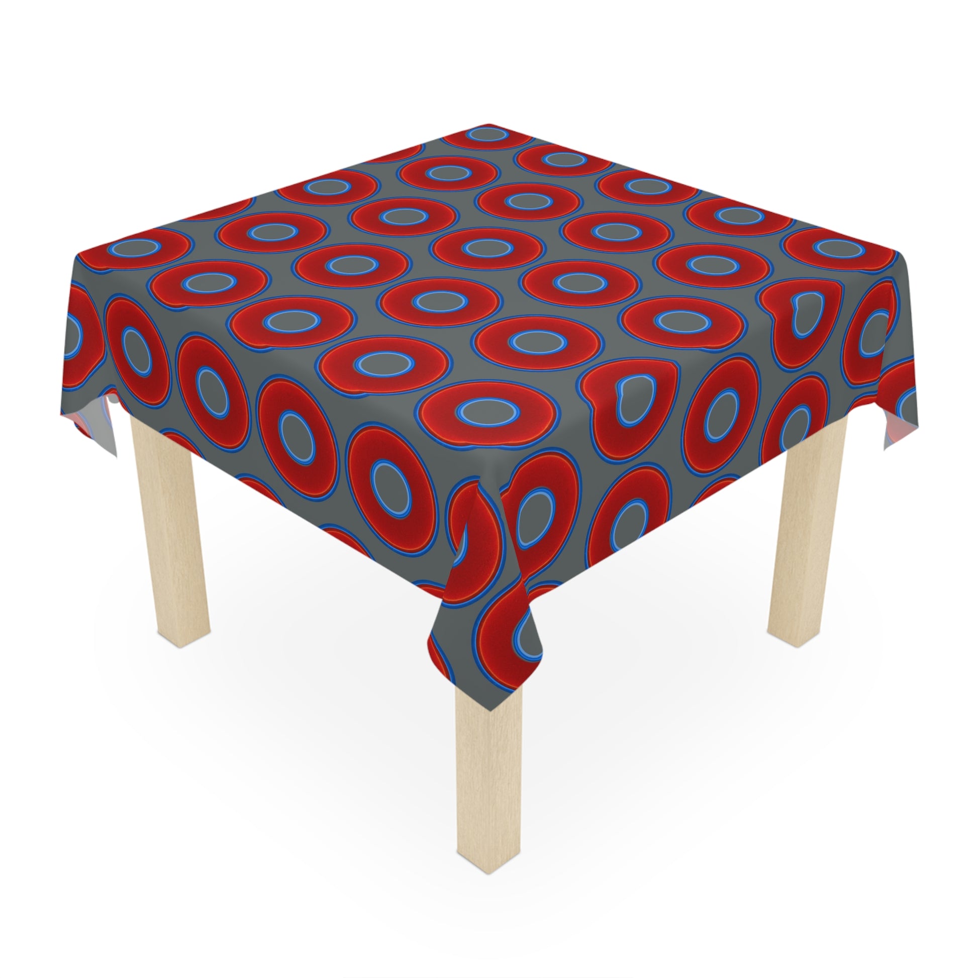 Lumpy Tablecloth - 55.1" x 55.1" - vivid red donuts w/dark gray background