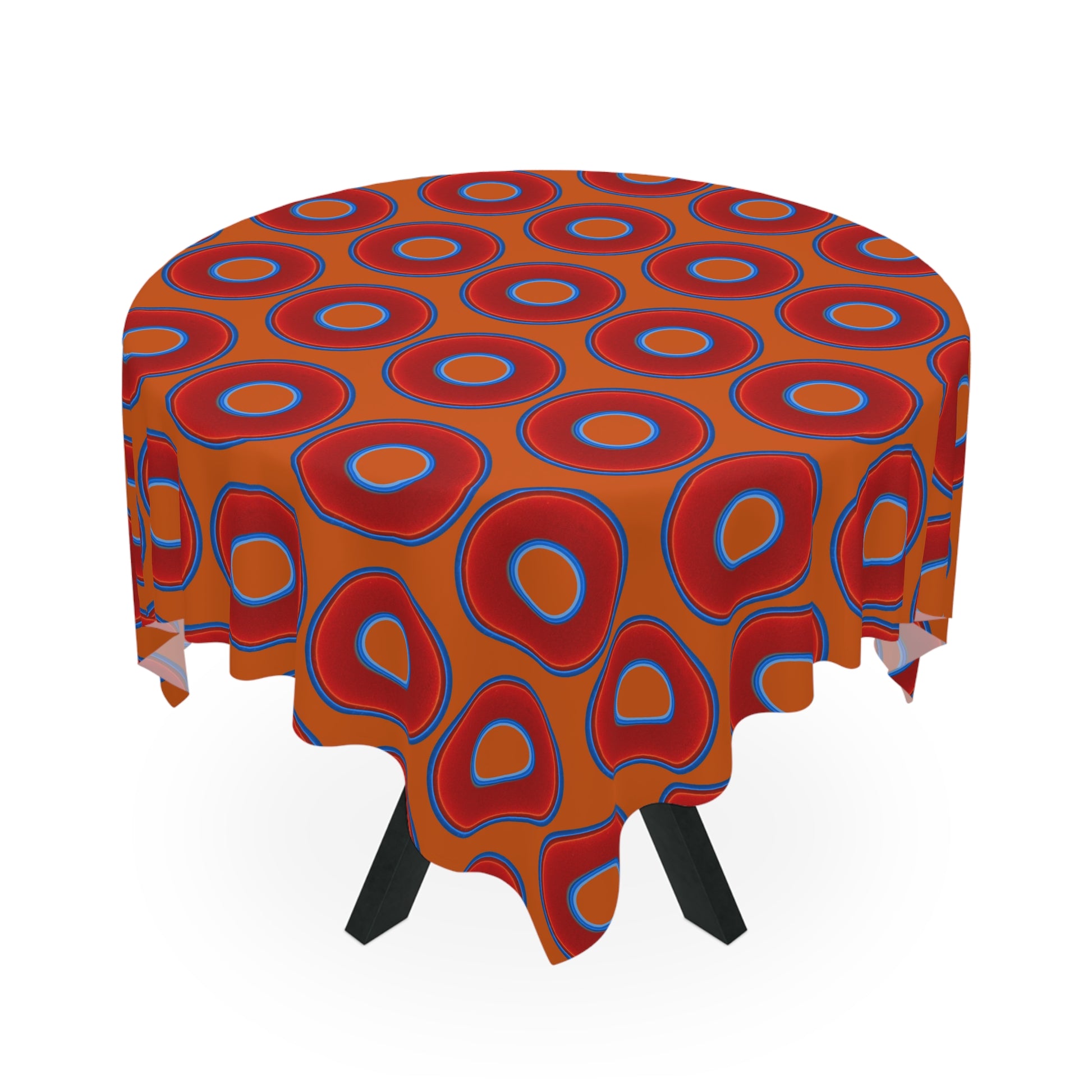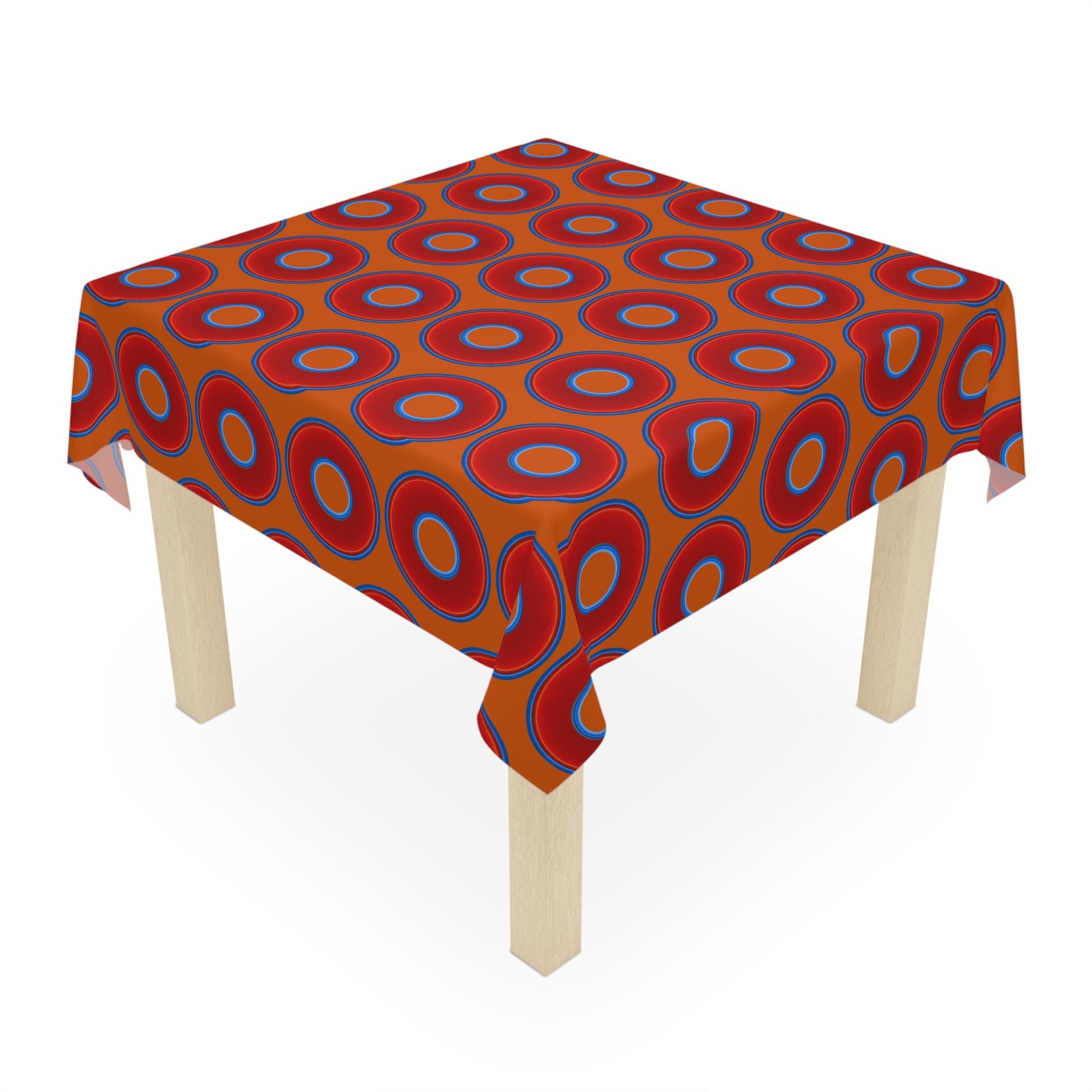 Lumpy Tablecloth - 55.1" x 55.1" - vivid red donuts w/dark orange background