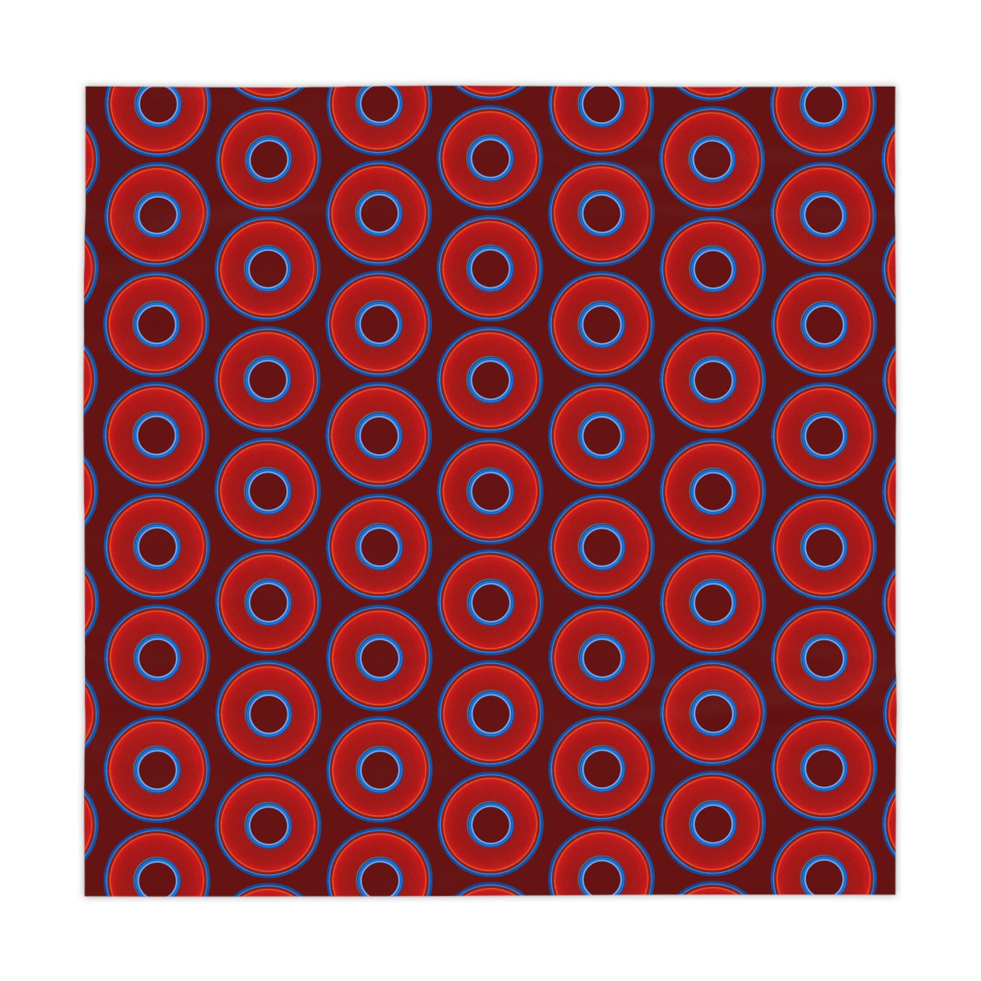 Lumpy Tablecloth - 55.1" x 55.1" - vivid red donuts w/dark red background