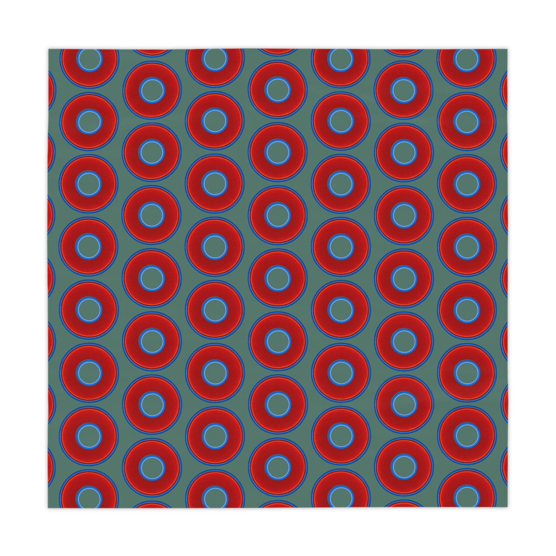 Lumpy Tablecloth - 55.1" x 55.1" - vivid red donuts w/Fenway green background