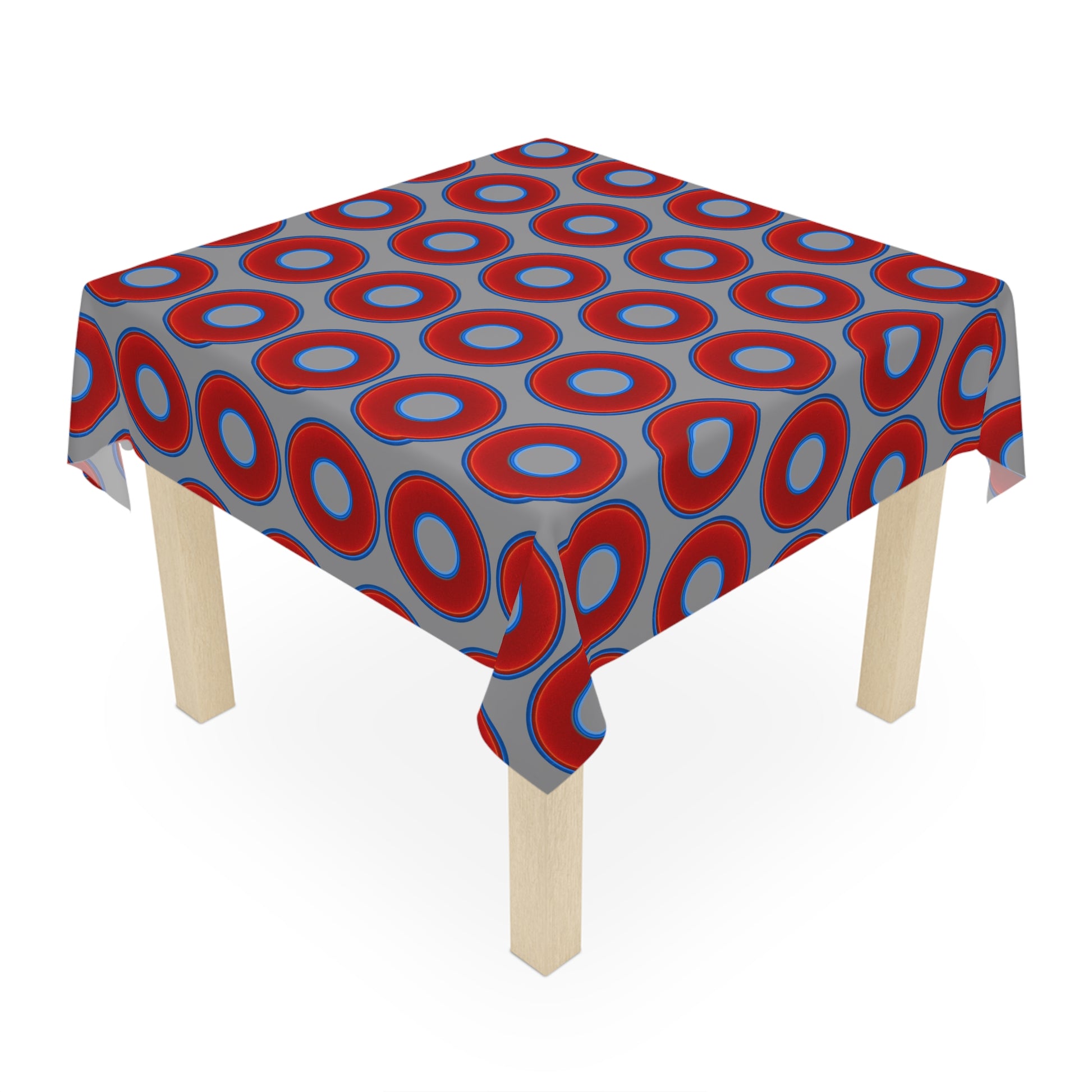 Lumpy Tablecloth - 55.1" x 55.1" - vivid red donuts w/gray background