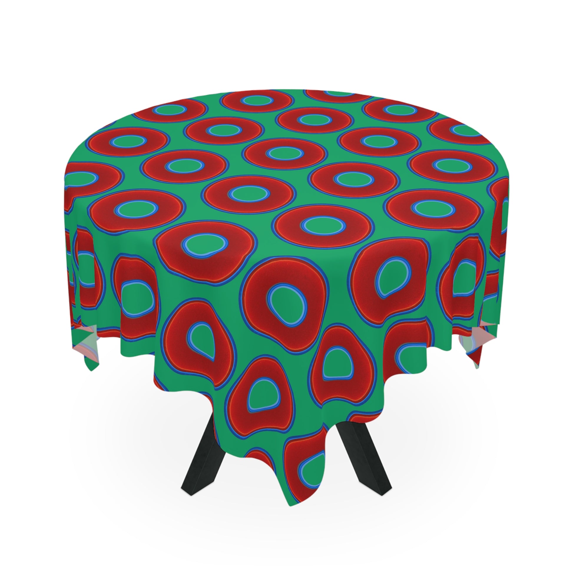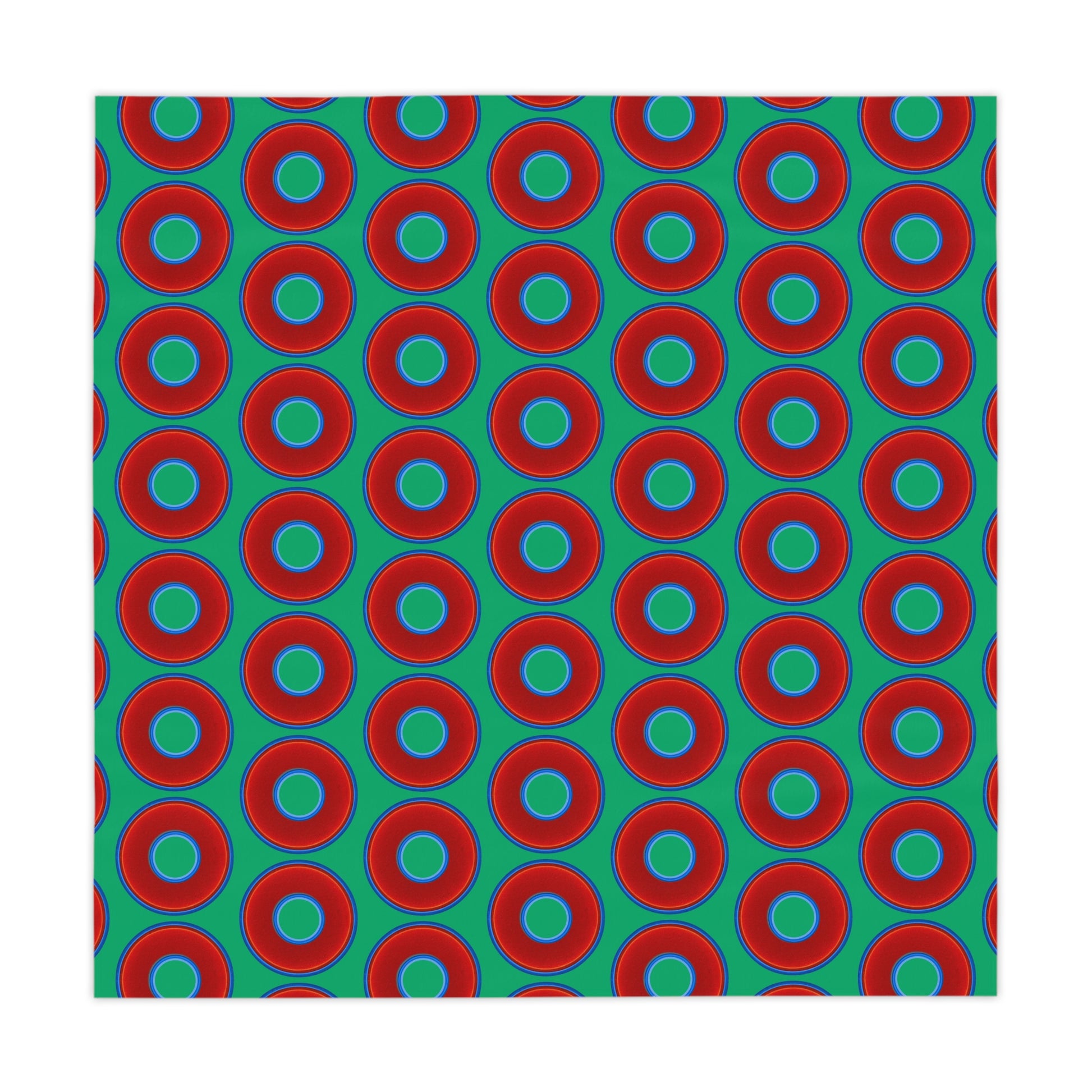 Lumpy Tablecloth - 55.1" x 55.1" - vivid red donuts w/jade green background