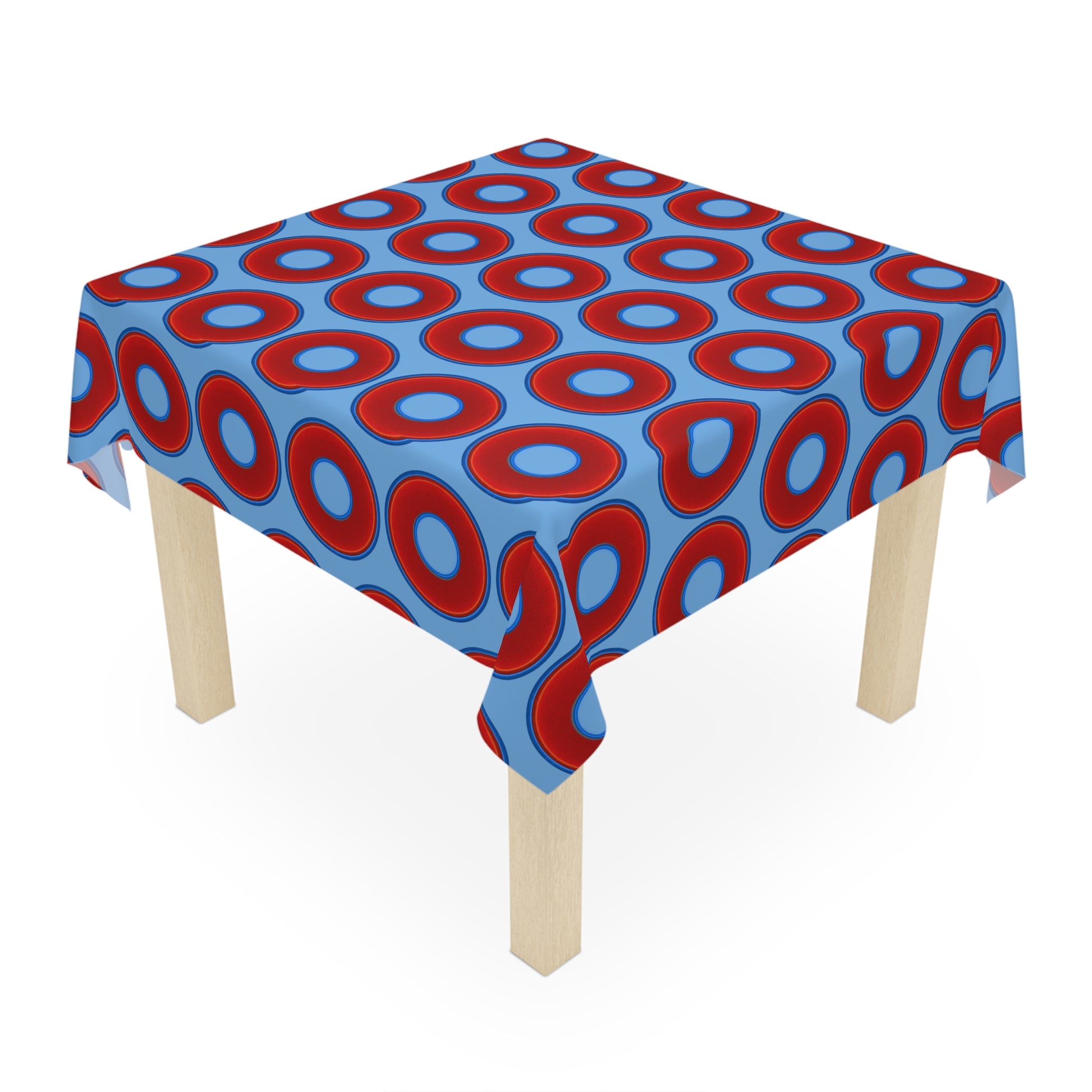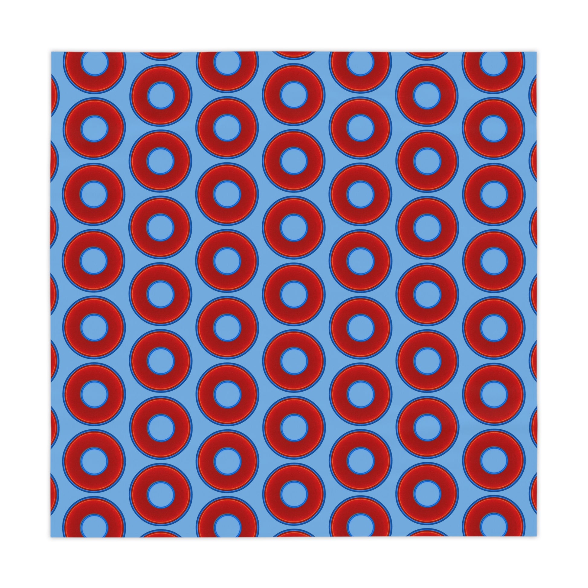 Lumpy Tablecloth - 55.1" x 55.1" - vivid red donuts w/light blue background