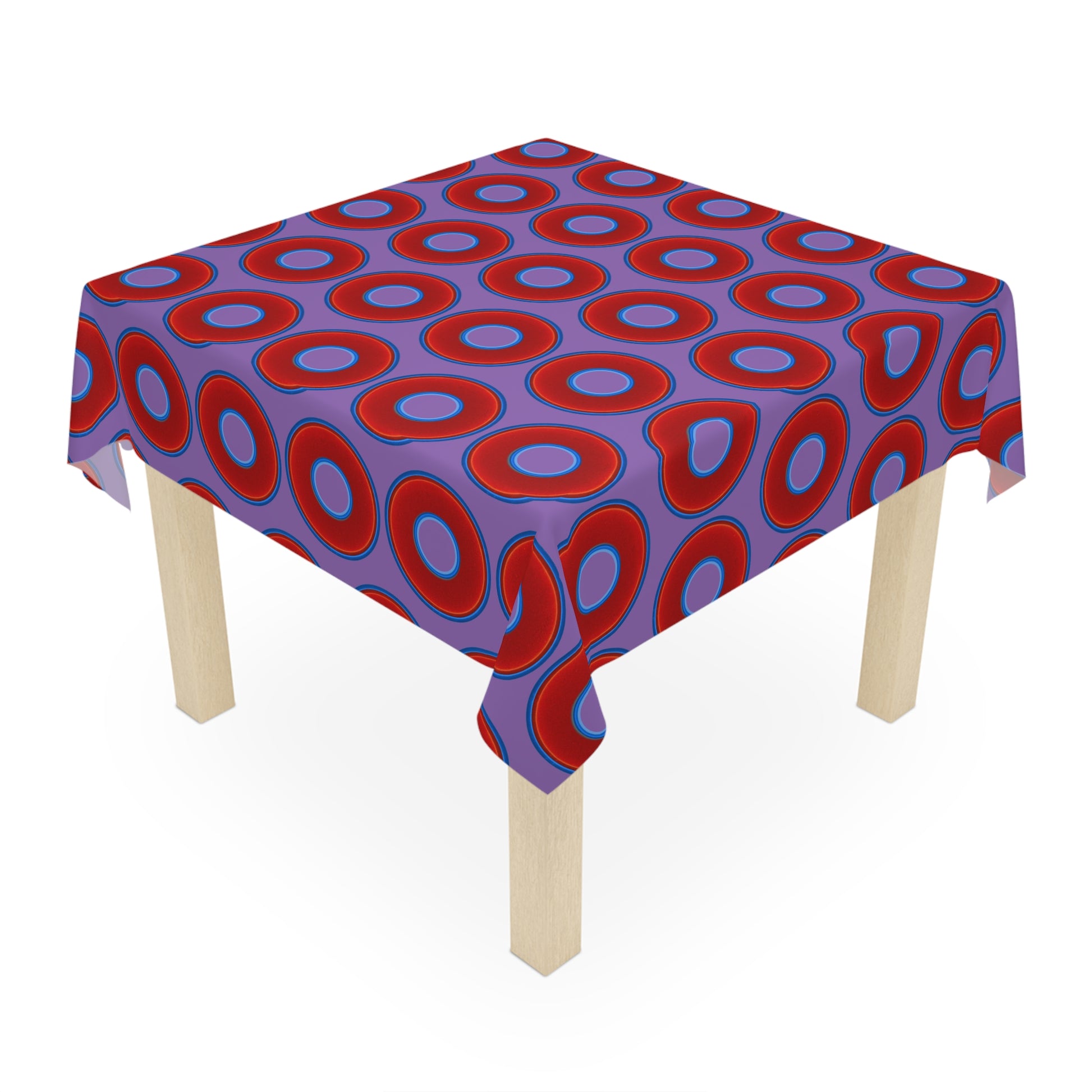 Lumpy Tablecloth - 55.1" x 55.1" - vivid red donuts w/light purple background