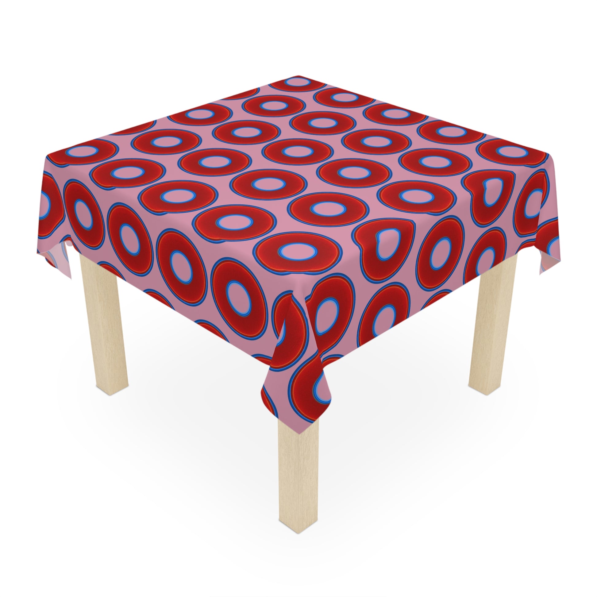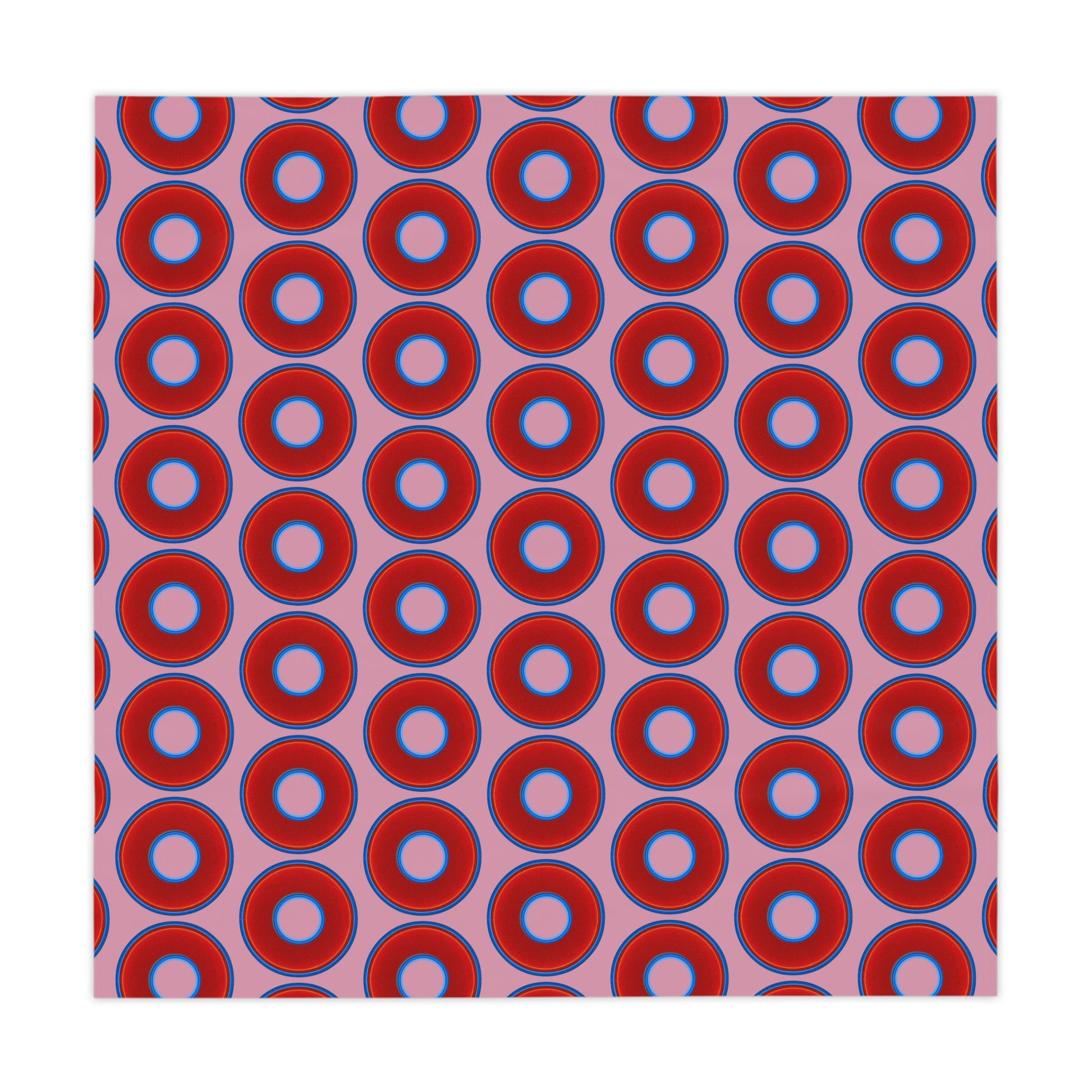 Lumpy Tablecloth - 55.1" x 55.1" - vivid red donuts w/pale magenta background