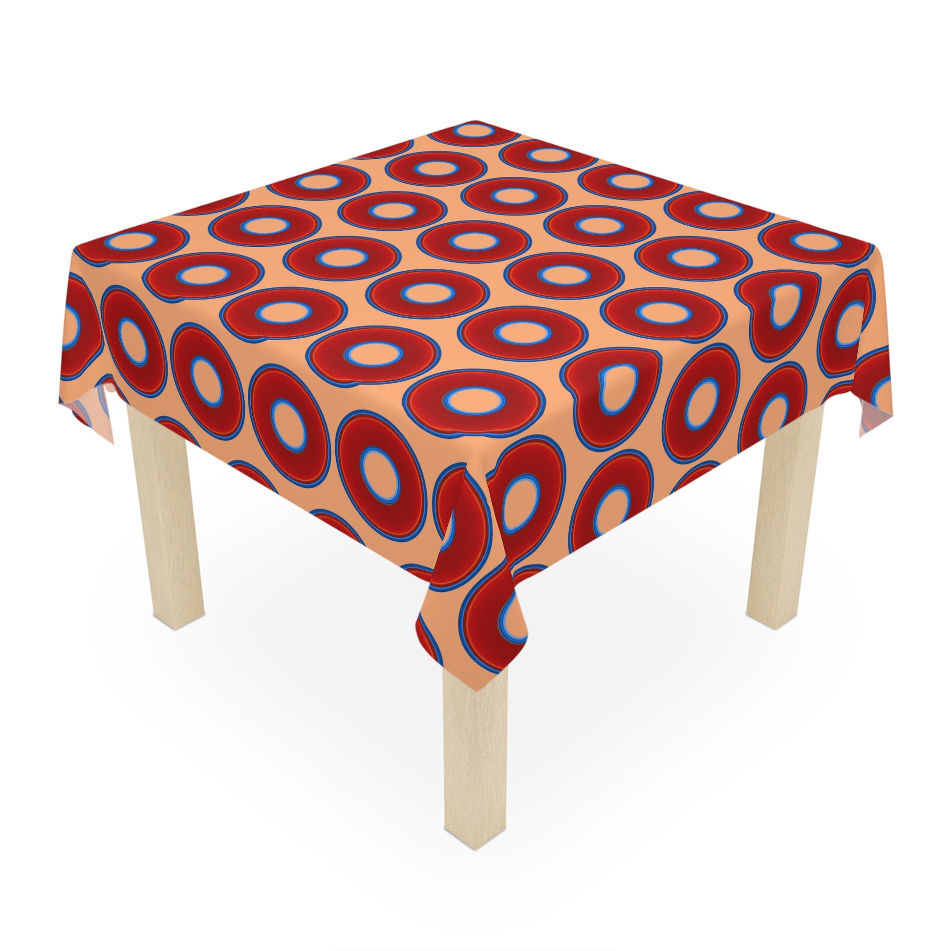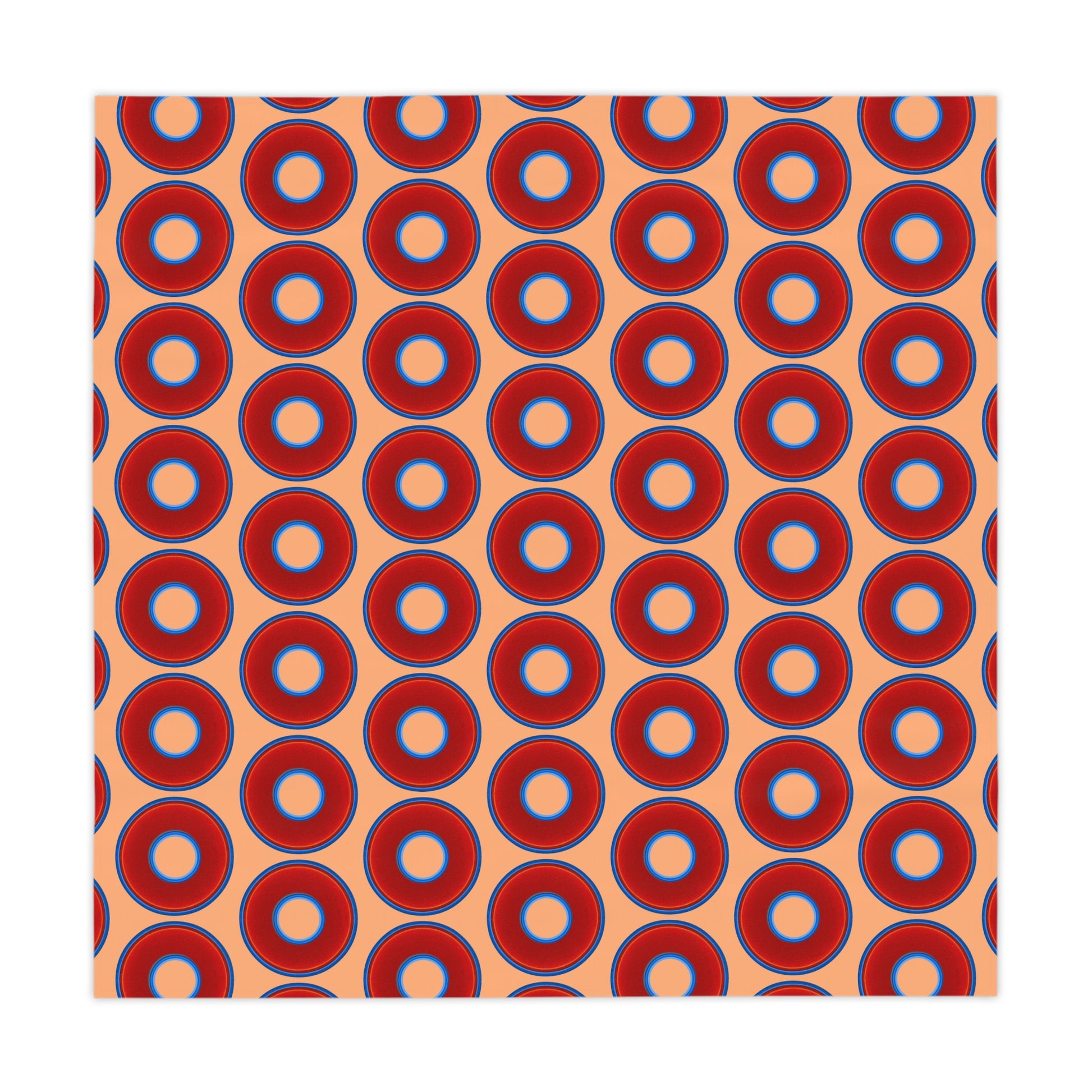 Lumpy Tablecloth - 55.1" x 55.1" - vivid red donuts w/peach background